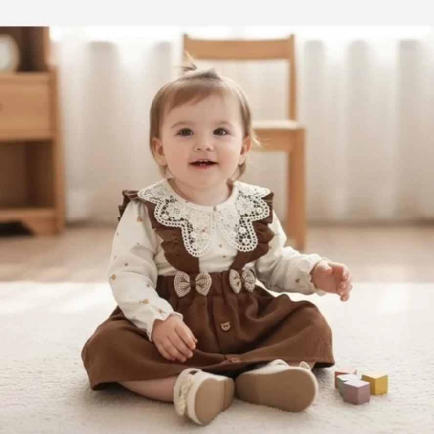 ست بلوز و سارافون مخمل کبریتی دخترانه عیدانه طرح دار مناسب 1 تا 3 سال
