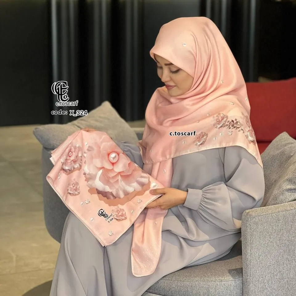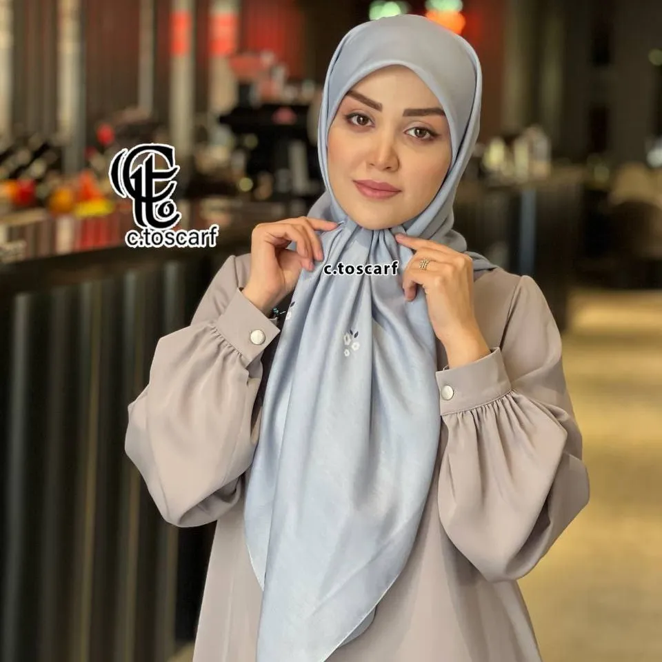 روسری مجلسی طرح حسنا نخ کاستوم قواره 110 دور چرخ دوز شیک و لیز نیست