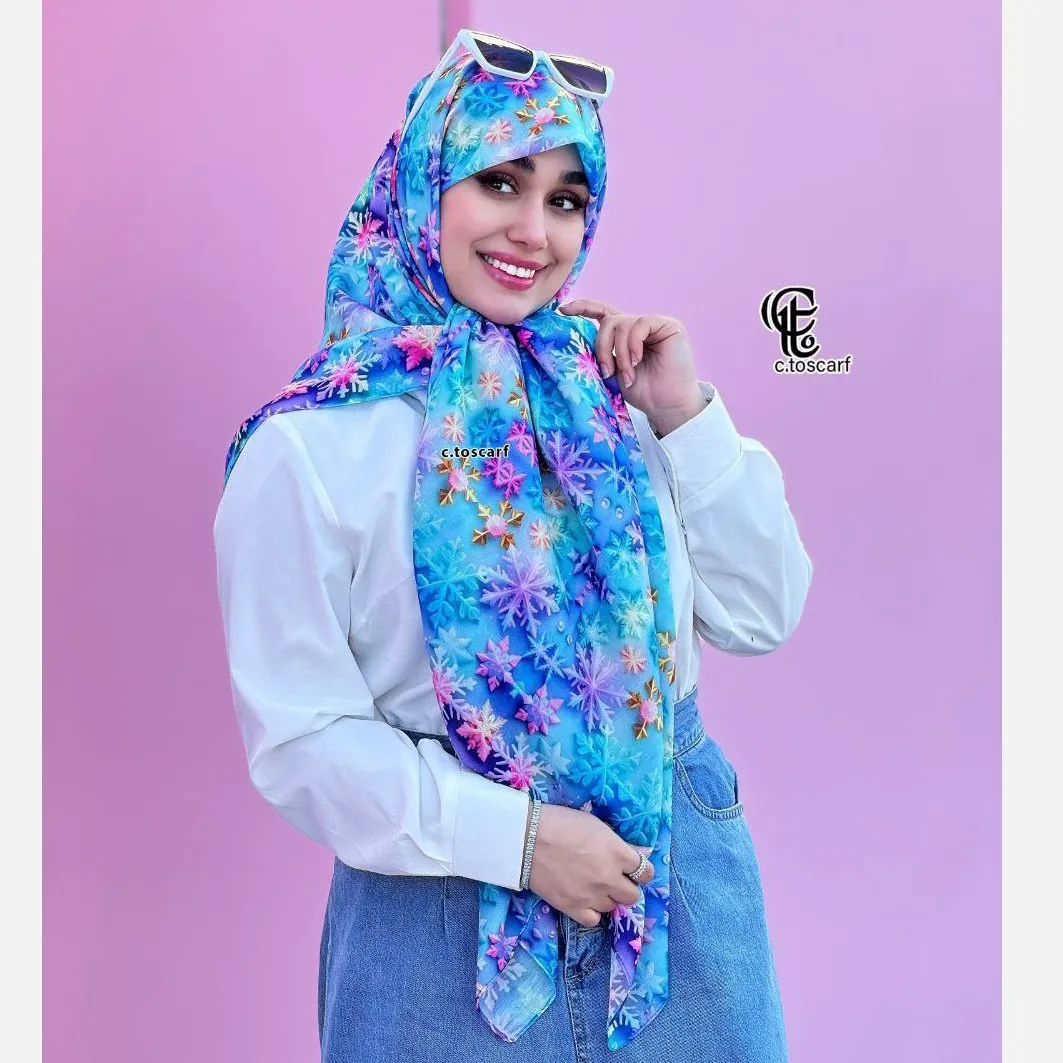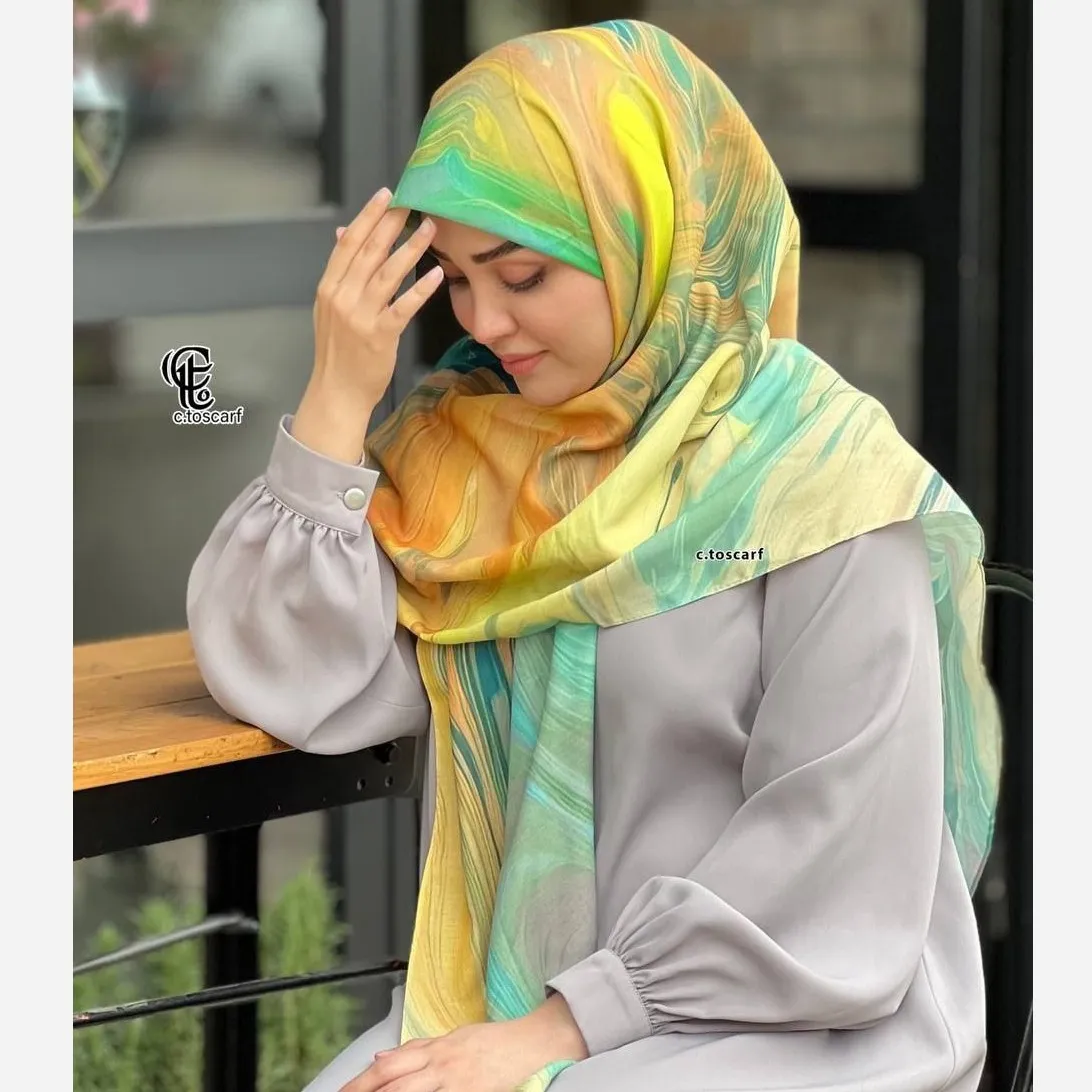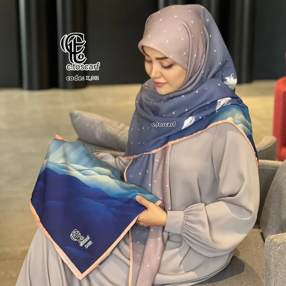 روسری طرح اقیانوس، قواره متوسط، دور دوخت، ساتن ابریشم، شال زنانه مجلسی