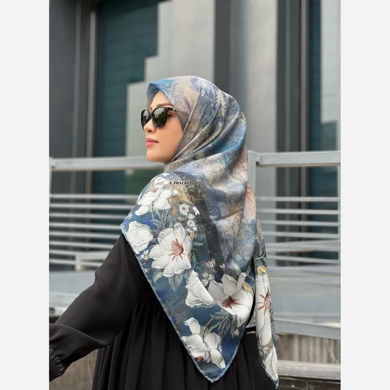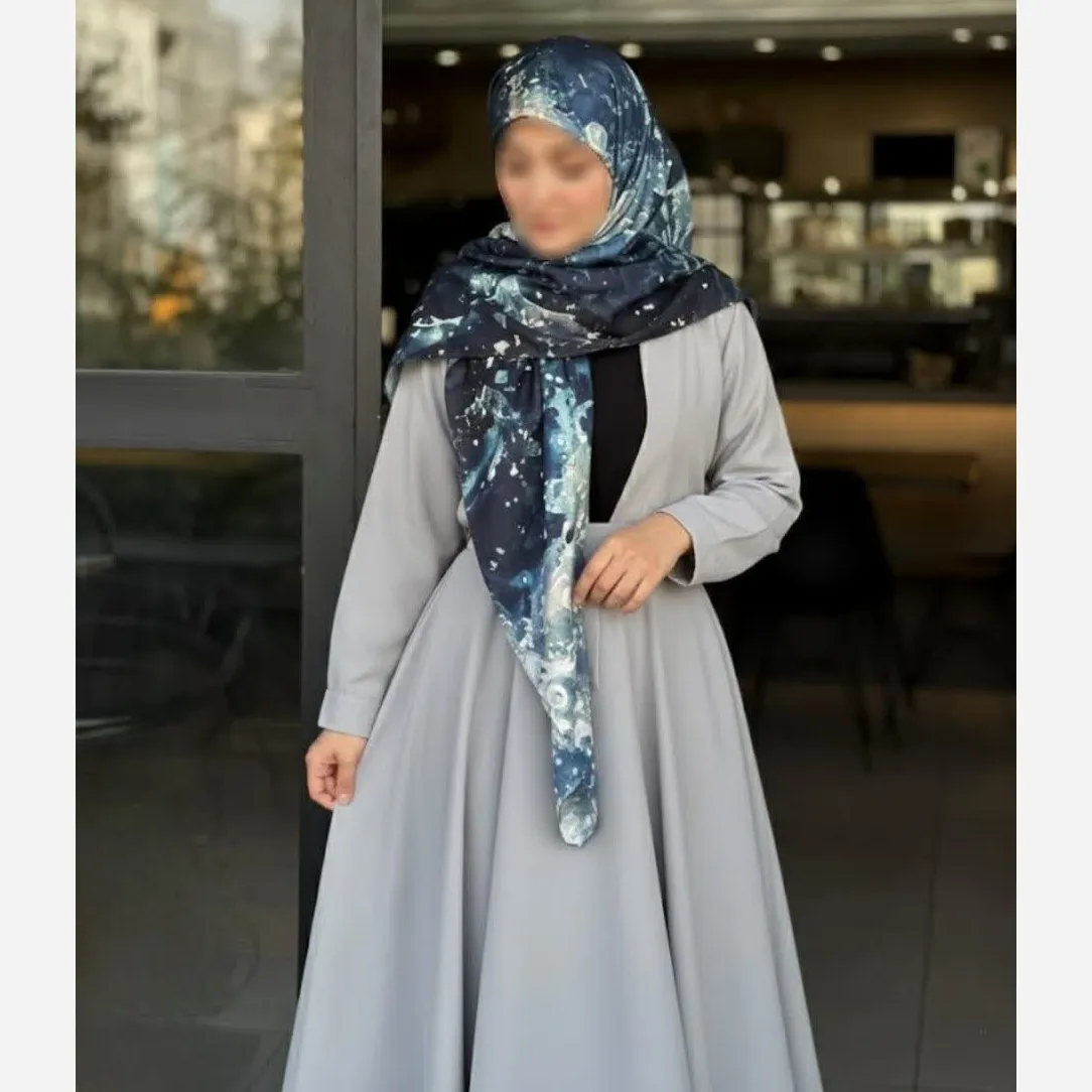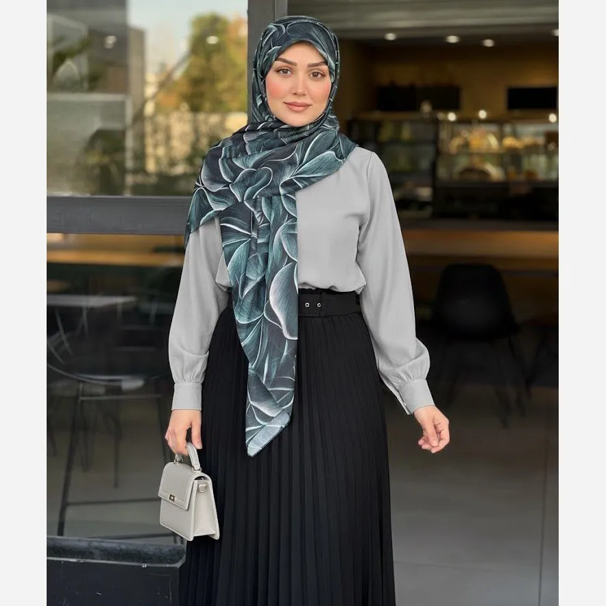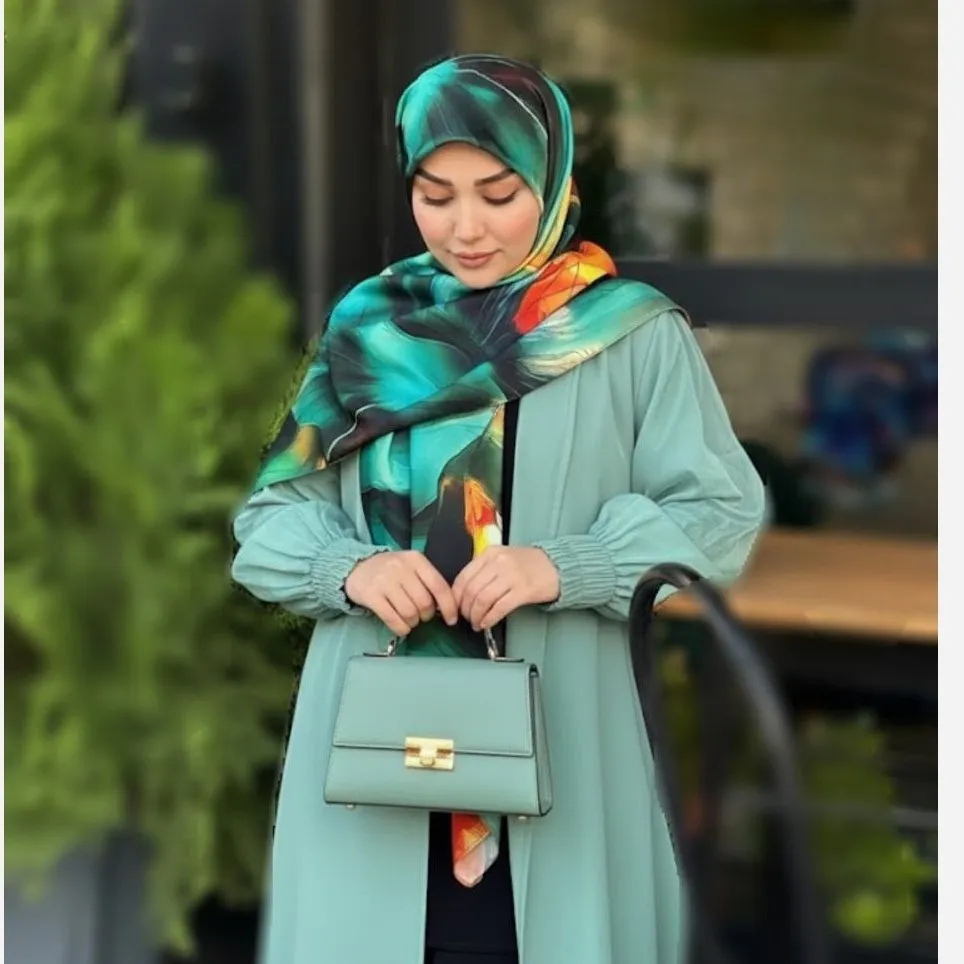روسری طرح اقیانوس، قواره متوسط، دور دوخت، ساتن ابریشم، شال زنانه مجلسی