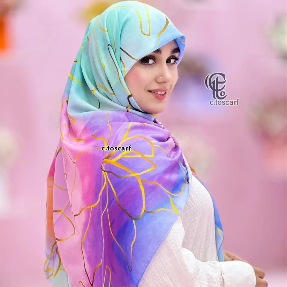 روسری زنانه طرح آبرنگی کد 2022 | جنس کـاستوم | سایز 140 | شیک و خاص