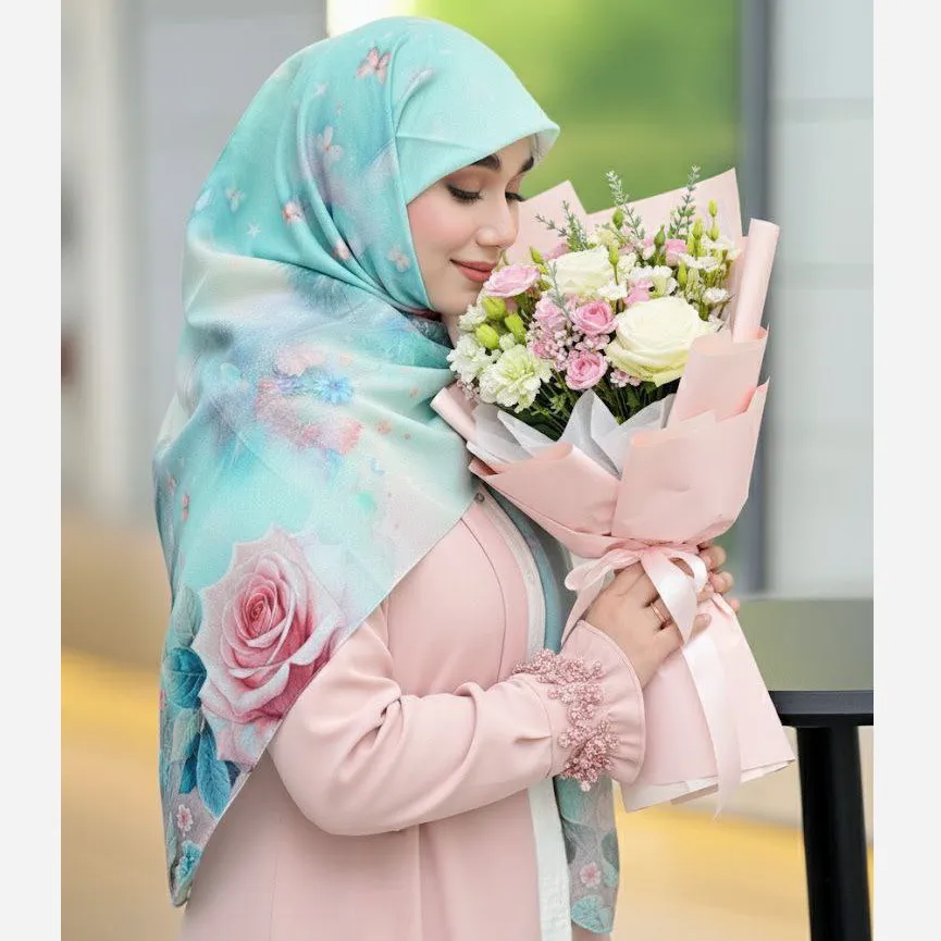 روسری طرح گل رز نخ کاستوم سیتو قواره متوسط 110 سانتیمتر چرخ دوز بدون لیز خوردگی