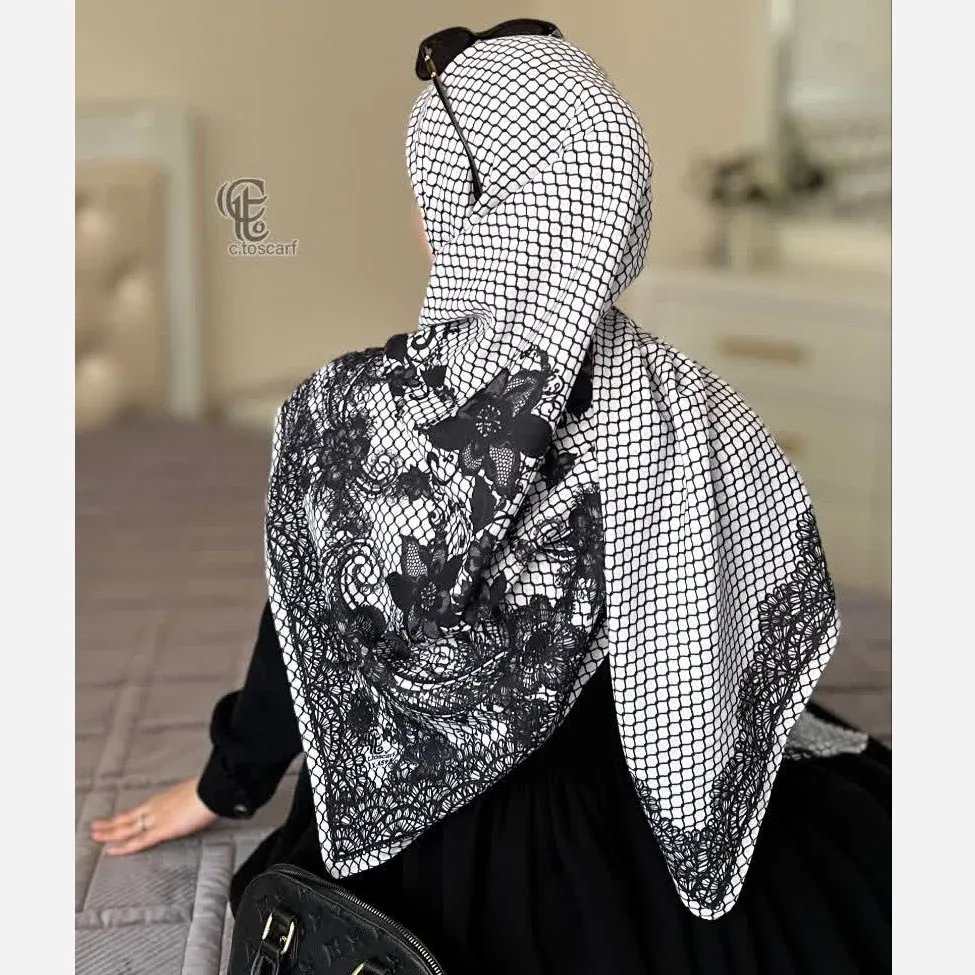 شال و روسری طرح سایه اسپرت سفید مشکی قواره بزرگ 140 نخ کاستوم سیتو
