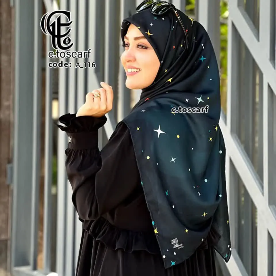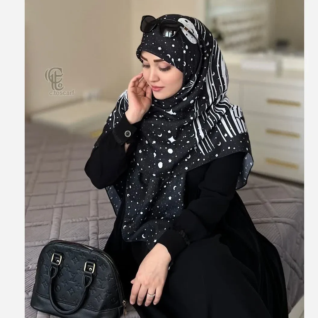 روسری زنانه طرح ماه و ستاره مشکی کد 123