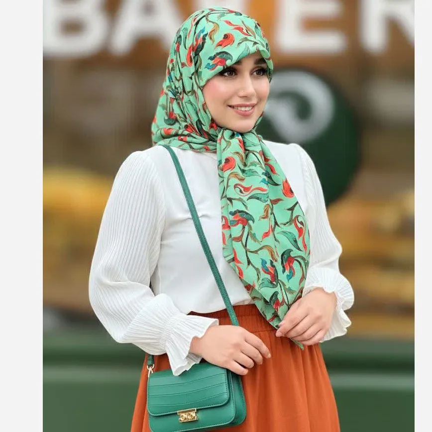 روسری طرح برگ سبز زنانه سایز 140 نخی کاستوم سی تو چرخ دوز