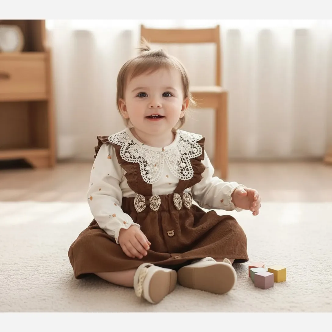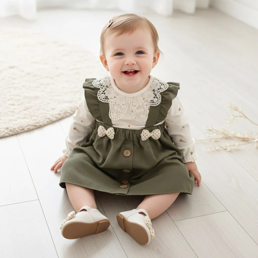 ست بلوز و سارافون نوزاد دخترانه کتان عیدانه طرح دار | مناسب 1 تا 3 سال