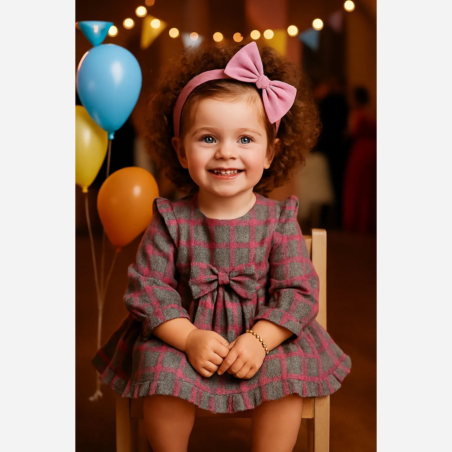 پیراهن کشمیر چهارخانه دخترانه پاپیونی مناسب 1 تا 4 سال