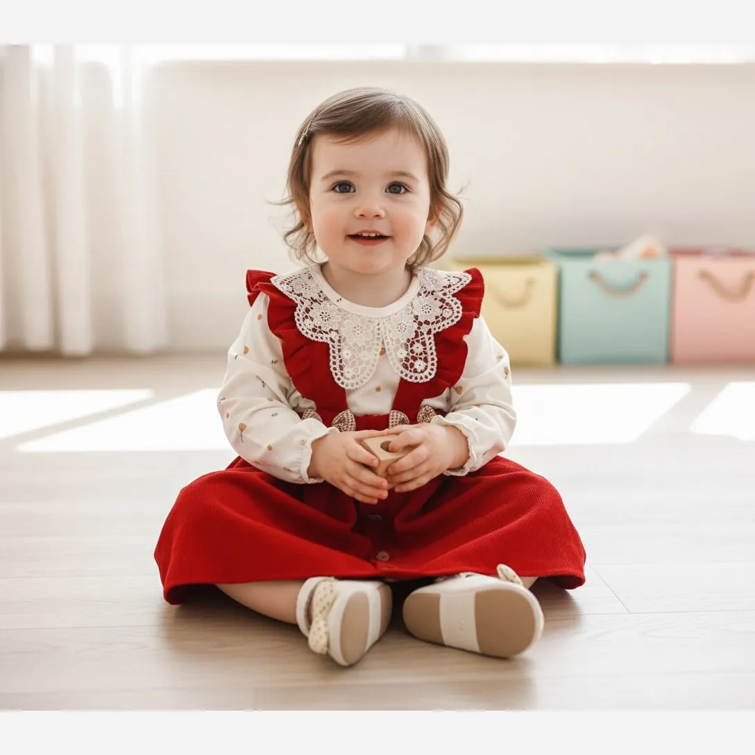 ست بلوز و سارافون مخمل کبریتی دخترانه عیدانه مناسب 1 تا 3 سال