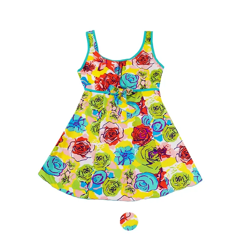 مایو دخترانه طرح گلدار پادار کاپ دار سایز 3XL
