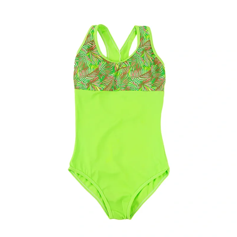 مایو دخترانه طرح برگ سبز لیمویی فری سایز
