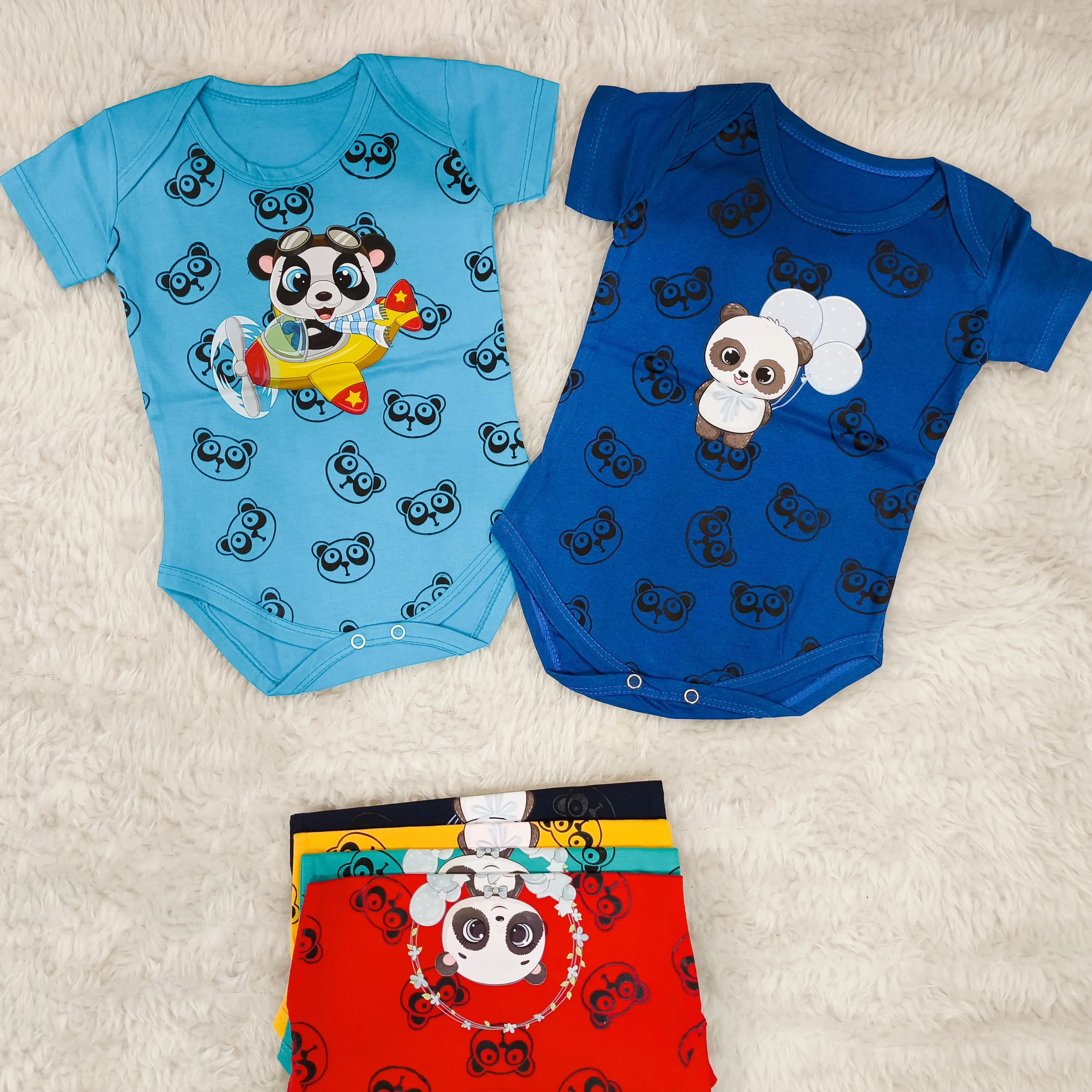 بادی نوزادی آستین کوتاه طرح پاندا | پنبه سوپر | 6 رنگ | 3 تا 12 ماه