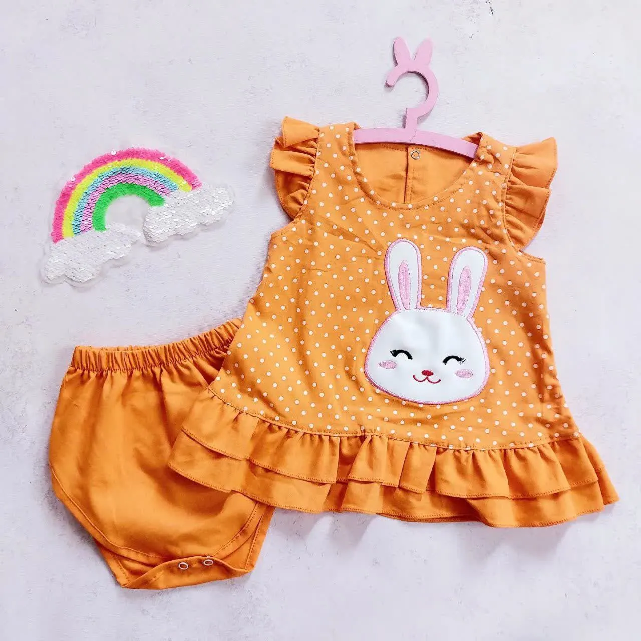 سارافون و شورت دخترانه طرح خرگوش | لباس تابستانی نخی خنک | مناسب 1 تا 3 سال