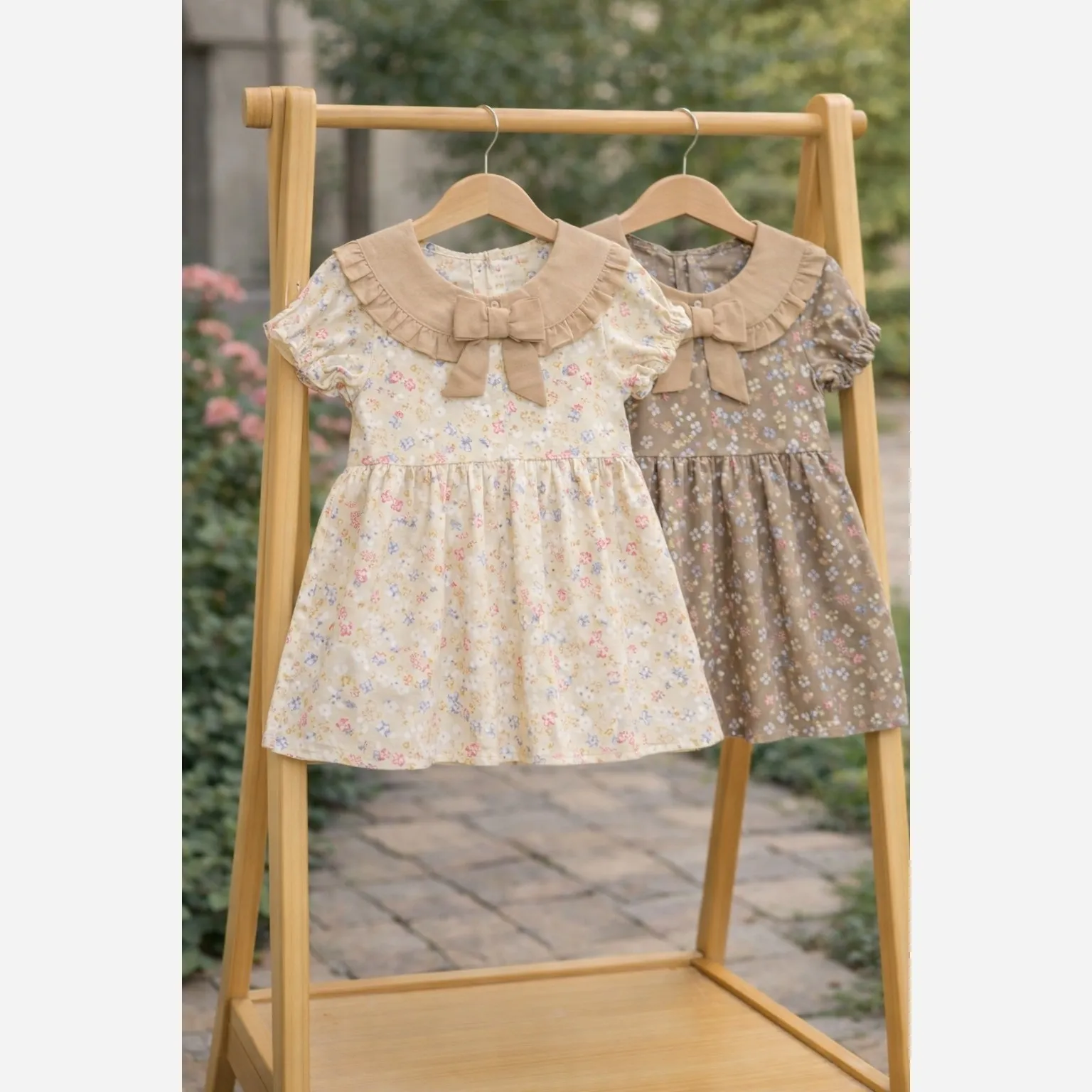 پیراهن نوزادی دخترانه طرح گلدار یقه پاپیونی | مناسب 6 تا 18 ماه