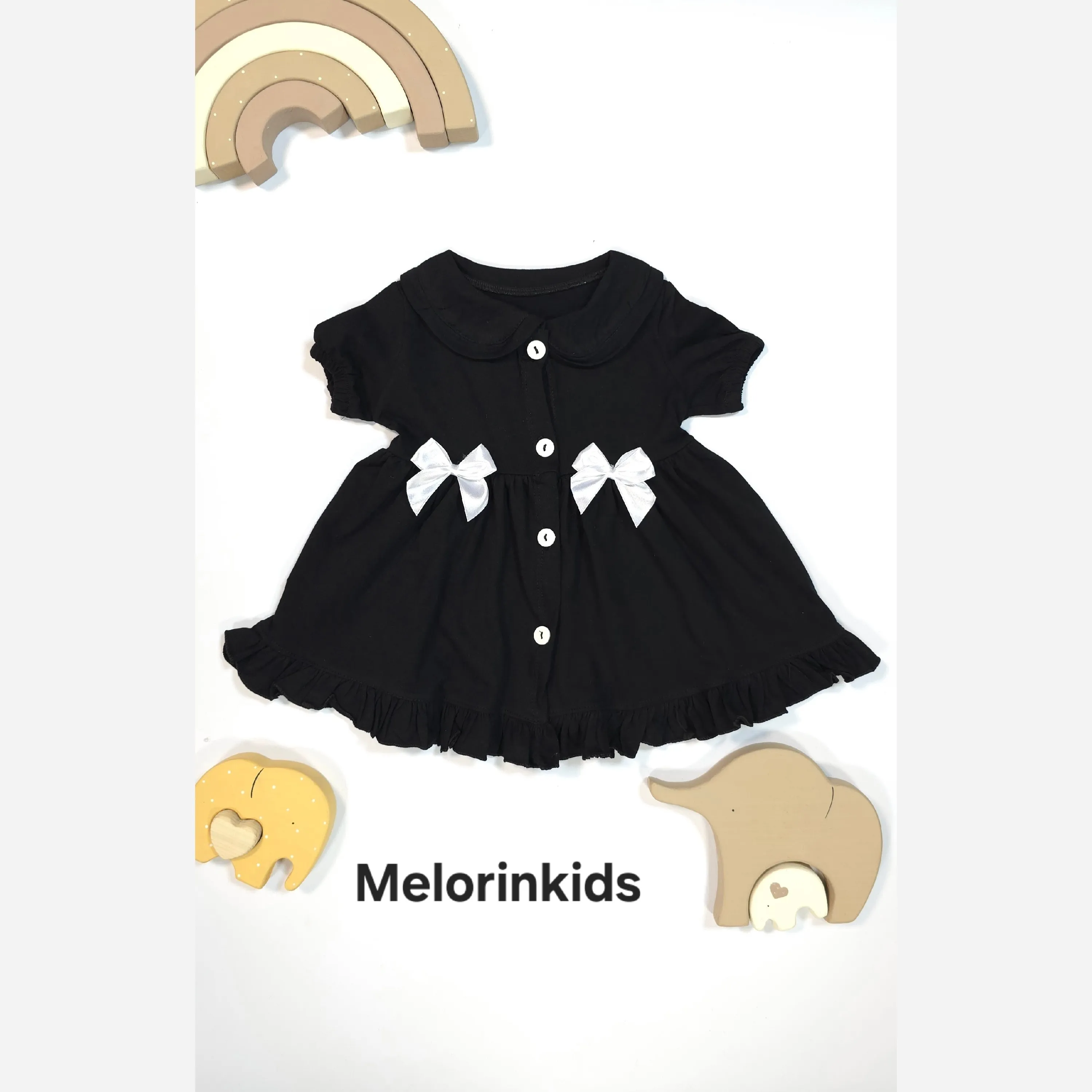 پیراهن دخترانه مشکی نخی پاپیونی 6 ماه تا 3 سال