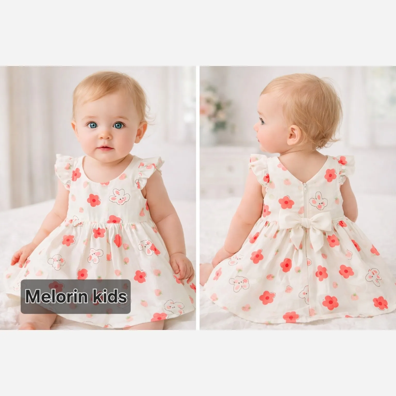 پیراهن نوزادی دخترانه طرح گل و خرگوش