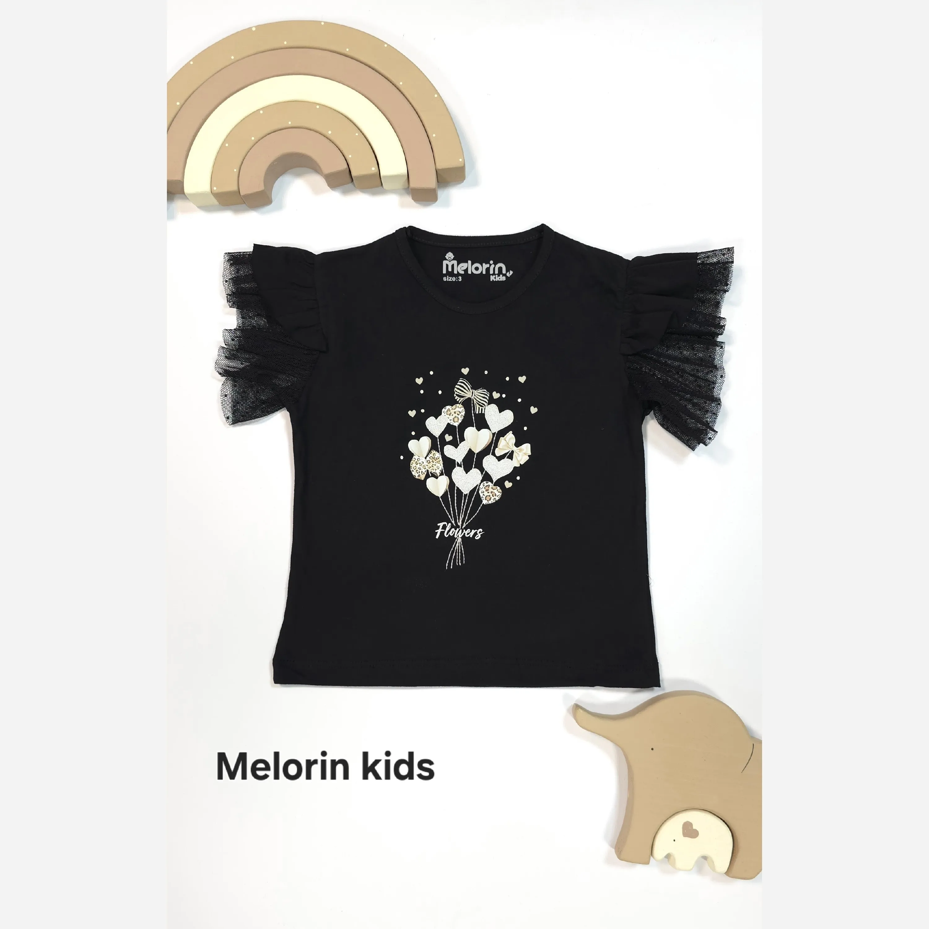 تیشرت دخترانه طرح قلب و گل با آستین توری | مناسب 6 ماه تا 2 سال