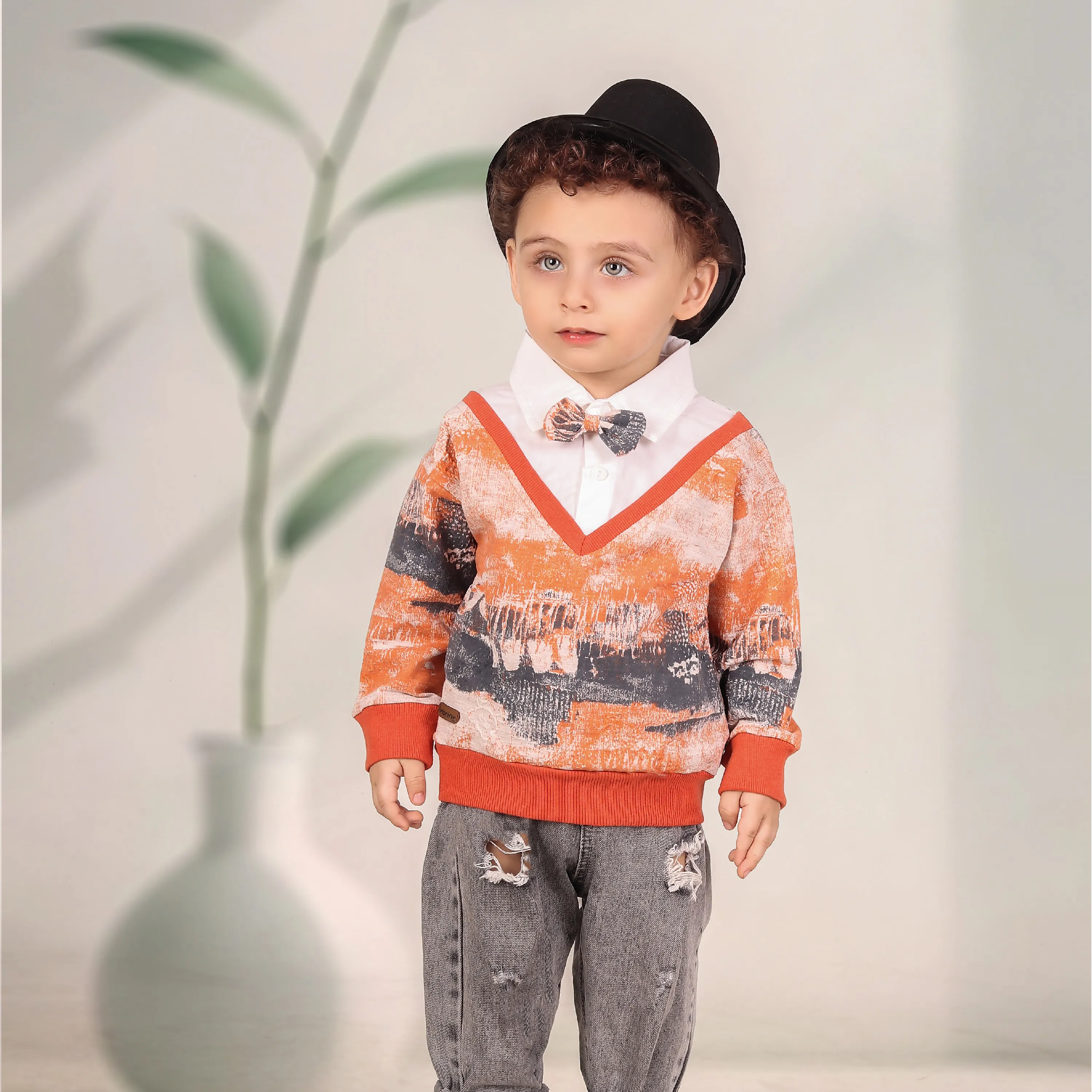 ست بلوز و پاپیون پسرانه طرحدار شیک مناسب 6 ماه تا 3 سال