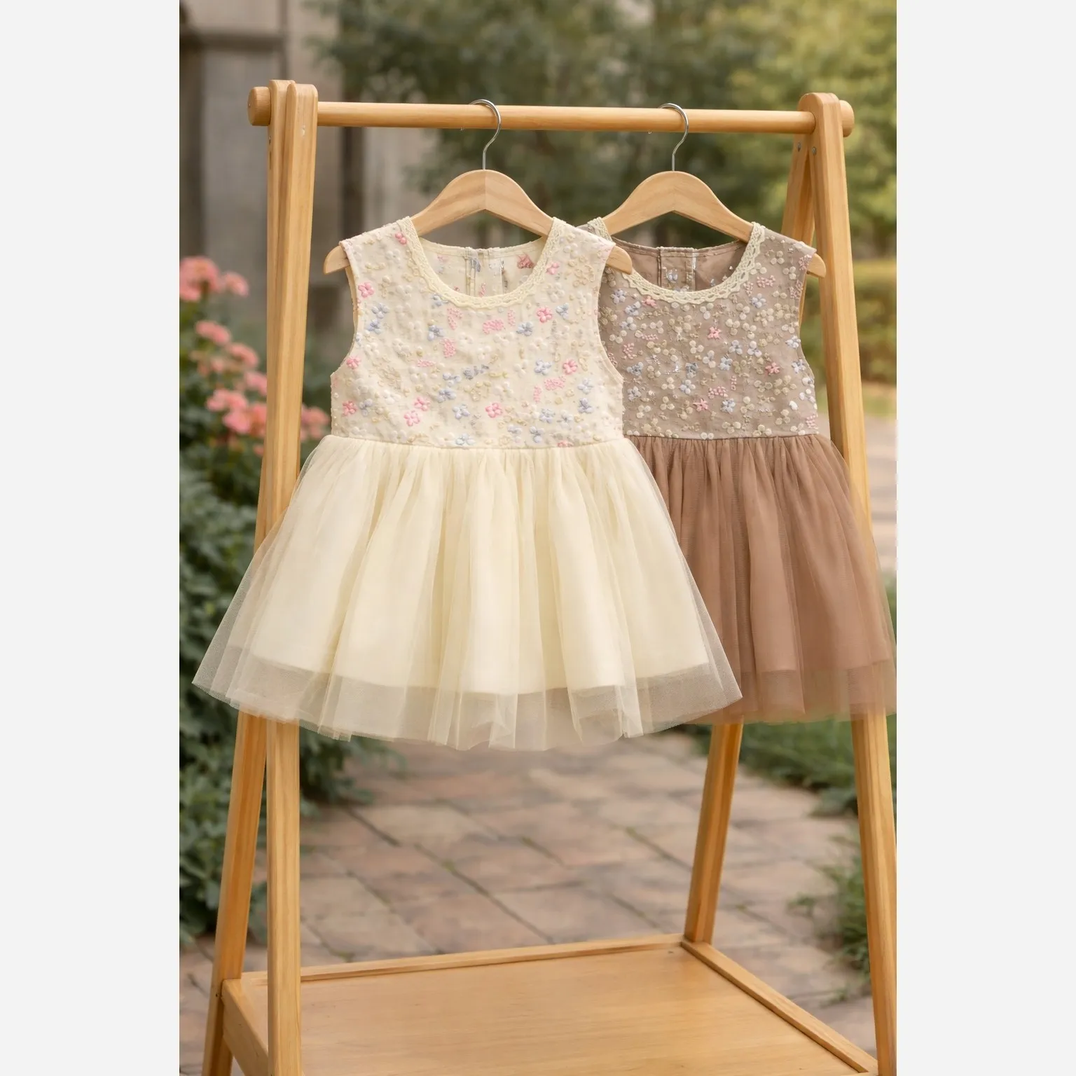 لباس مجلسی دخترانه طرح گل برجسته مناسب 3 ماه تا 12 ماه در 2 رنگ و 3 سایز