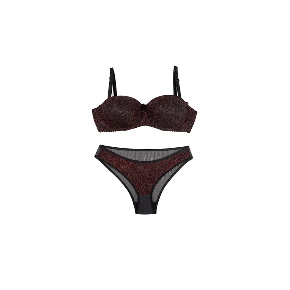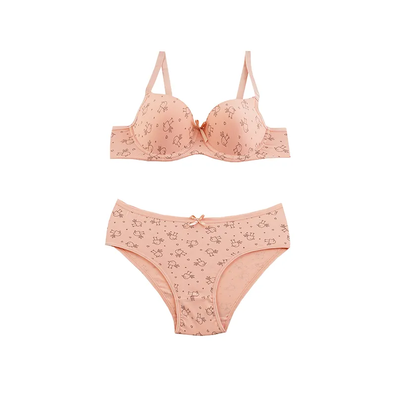 ست لباس زیر زنانه کبریتی فنردار کاپ B طرح اسلیپ نیم جک