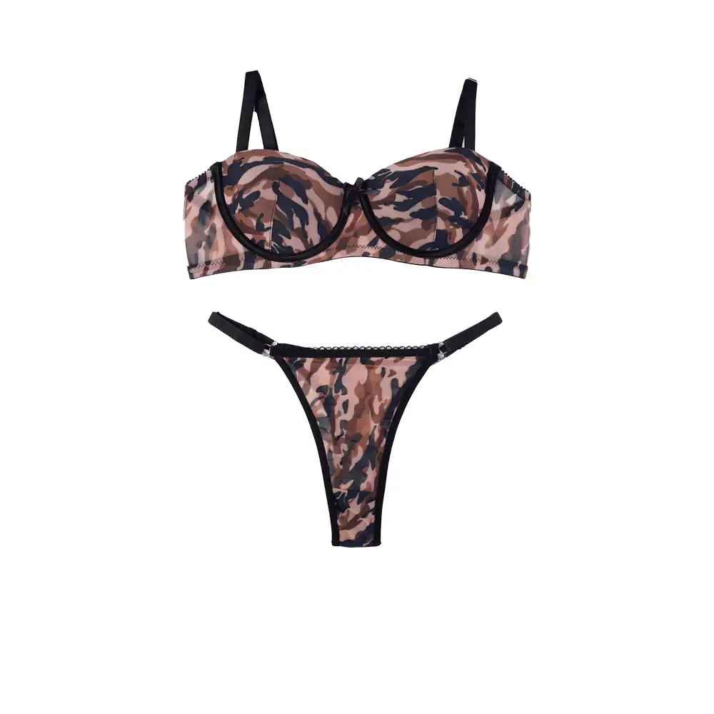 ست لباس زیر زنانه طرح پلنگی، فنردار، جک دار، کاپ B، تور و میکروفایبر