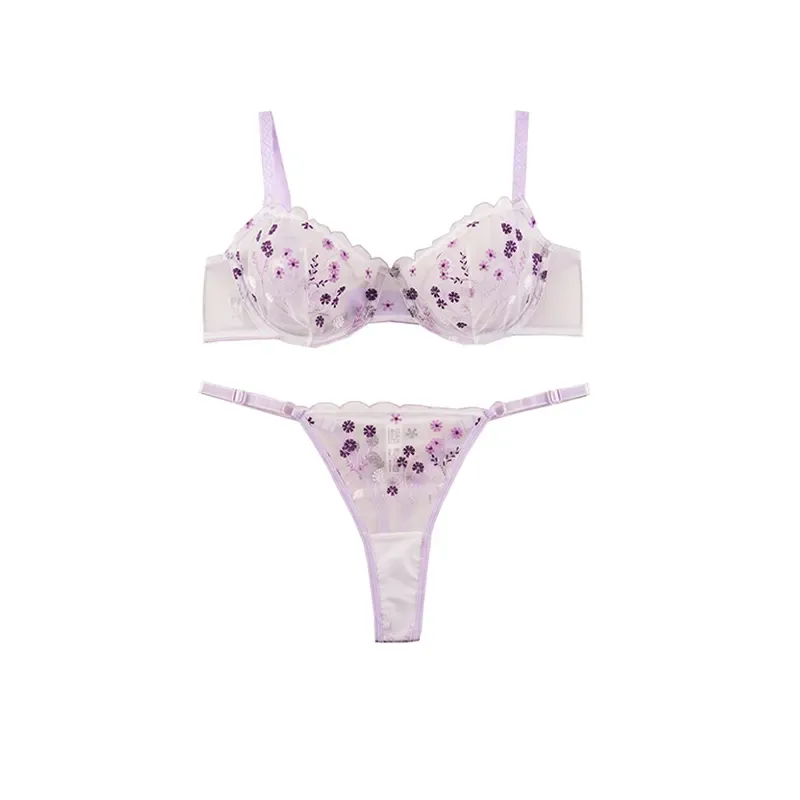 ست لباس زیر زنانه فانتزی طرح گل تورگاز بکلس فنردار