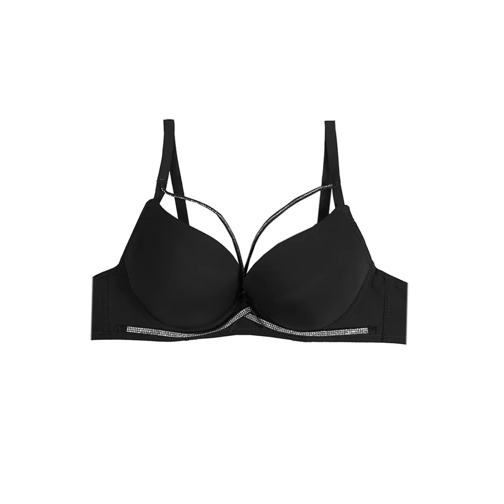 سوتین زنانه فنردار اسفنجی کاپ ماساژوری با بند تزئینی و نگیندار
