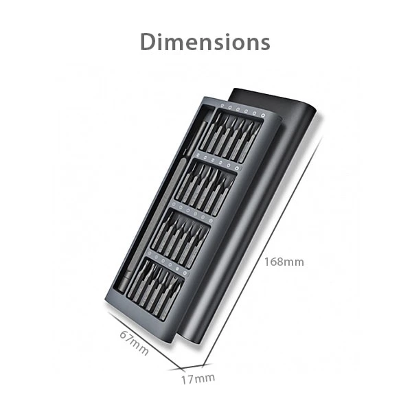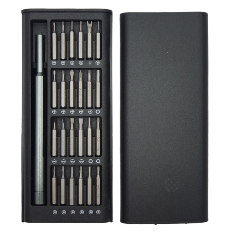 یک ست پیچ گوشتی ظریف و بسیار کم حجم بوده که دارای 24 سری پیچ گوشتی کاربردی می باشد. این ست دارای ابعاد کوچکی است به گونه ای که به راحتی در جیب کت یا کاپشن جای می گیرد. داشت یک جعبه پلاستیکی درب دار باعث منظم شدن ست پیچ گوشتی می شود. این ست پیچ گوشتی با 24 سری مختلف فلزی یک پیچ گوشتی ظریف همه کاره بوده که نیاز های ابتدایی یک تعمیرکار را در یک پک کوچک جای داده است.