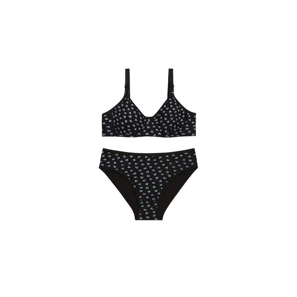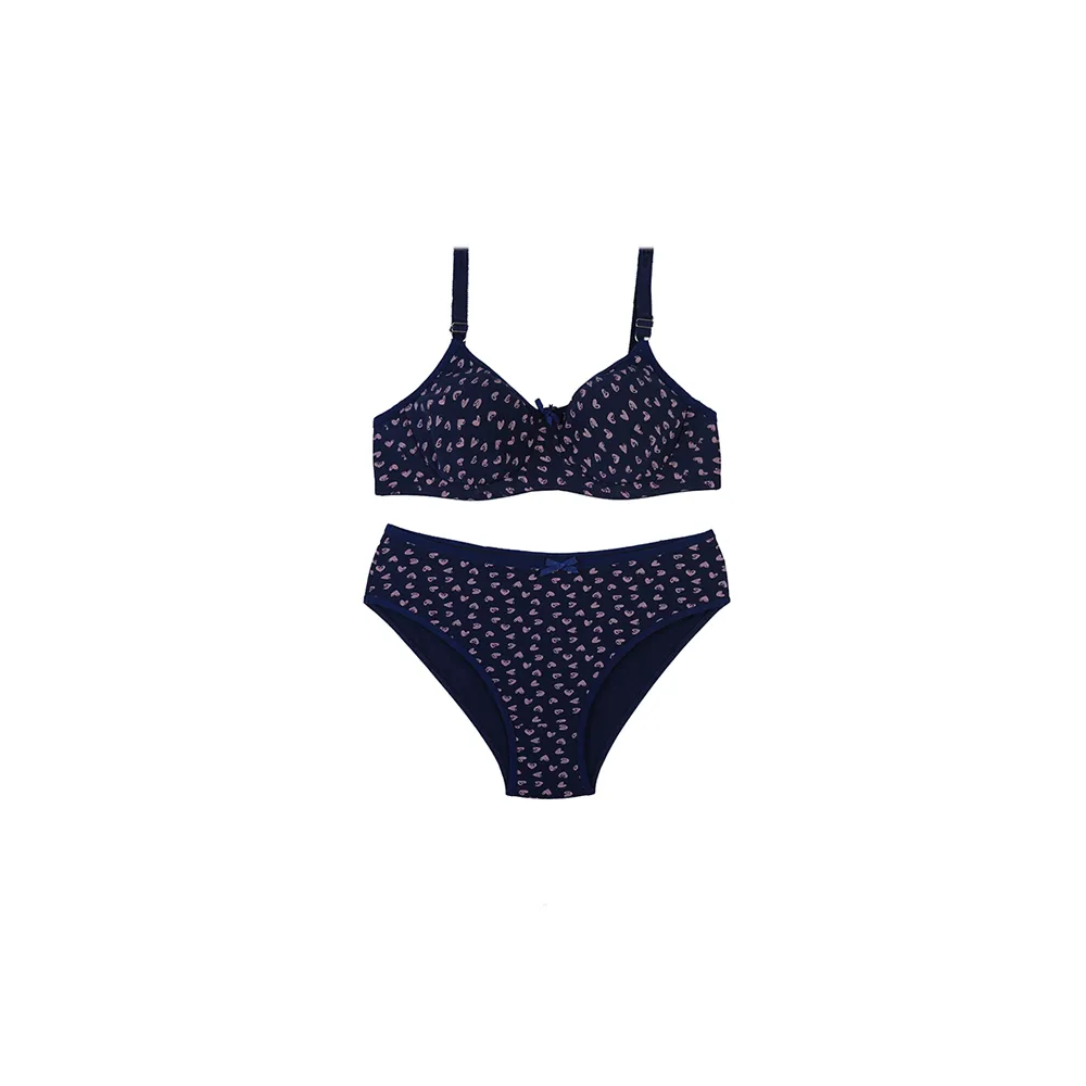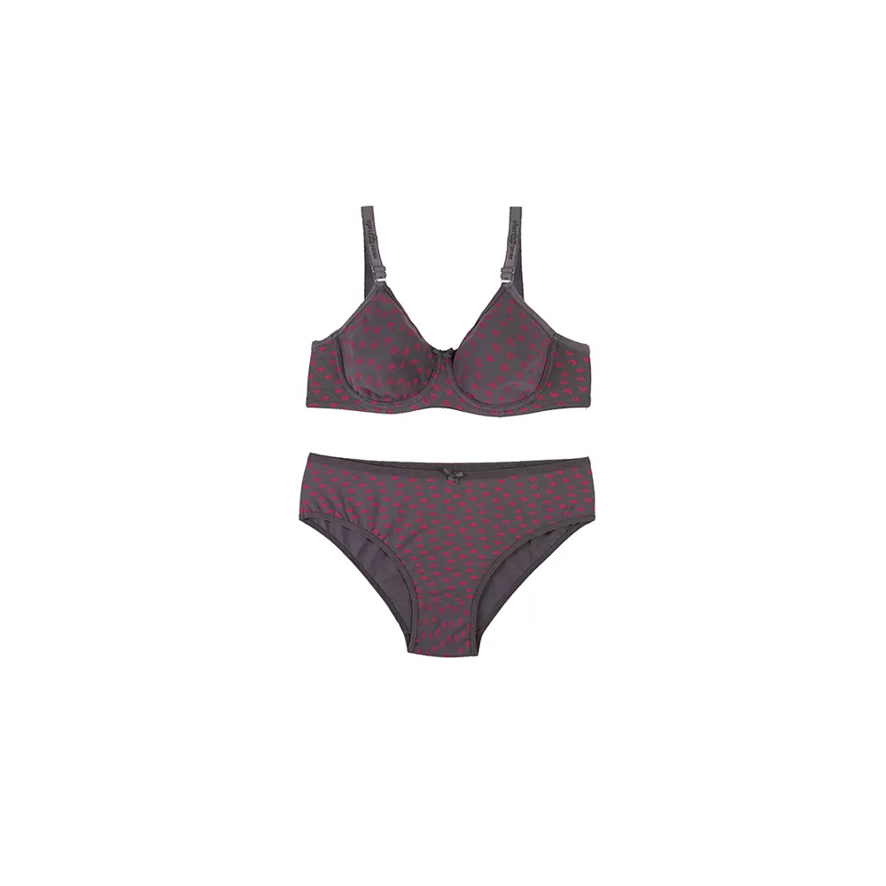 ست لباس زیر زنانه نخی طرح قلب فنردار اسلیپ پرسی