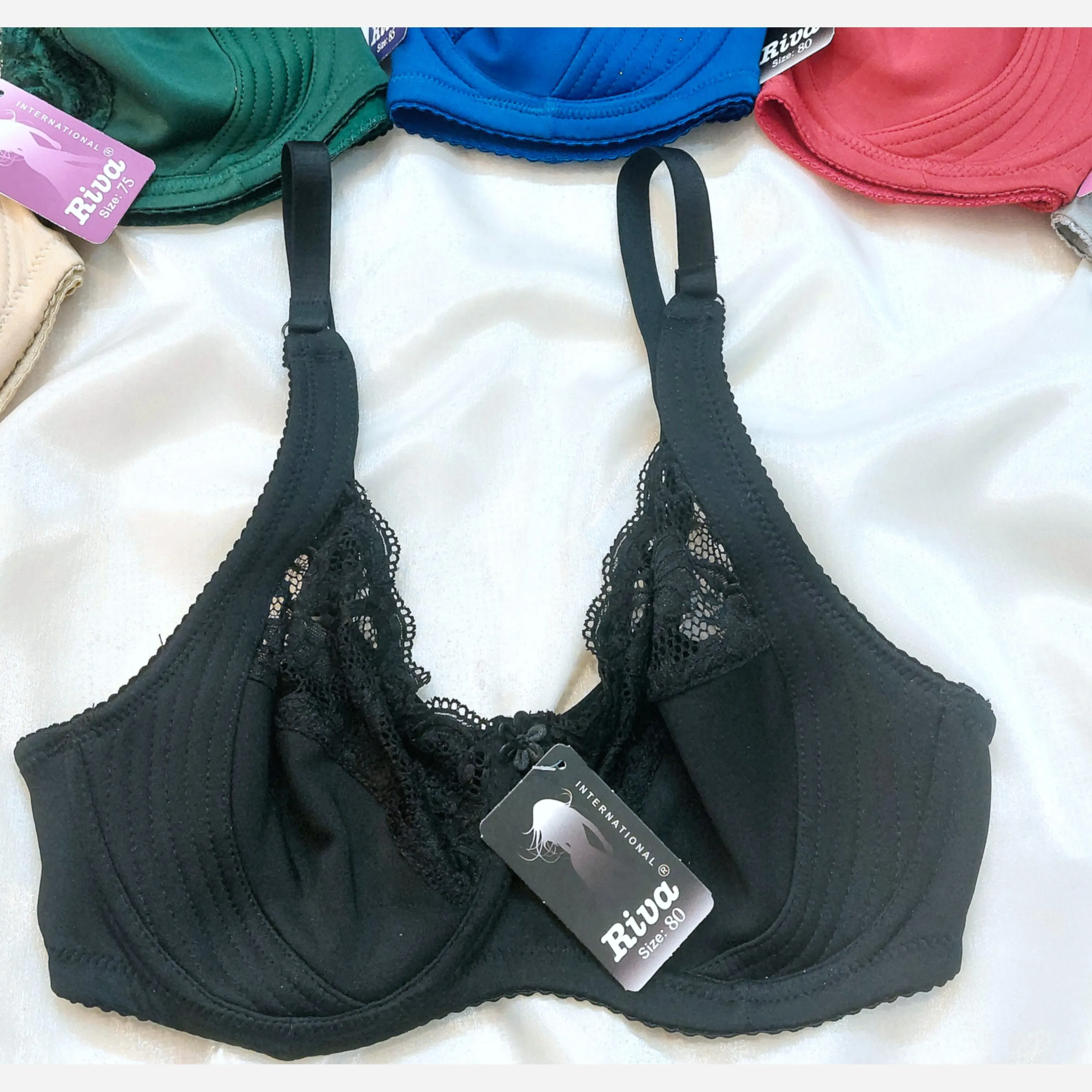 - سایز 80: طول سوتین 70 سانتیمتر (مناسب دور کمر 81 تا 87 سانتیمتر) - طول کاپ 17 سانتیمتر، عرض کاپ 13 سانتیمتر