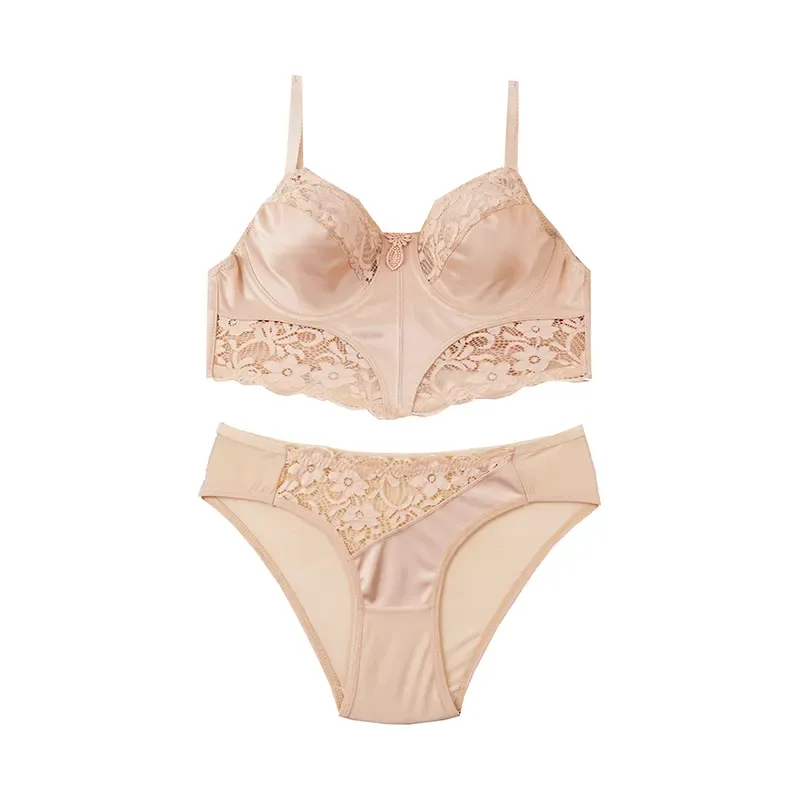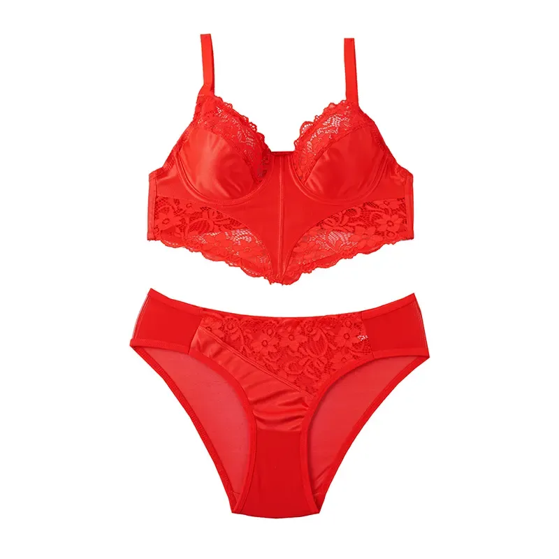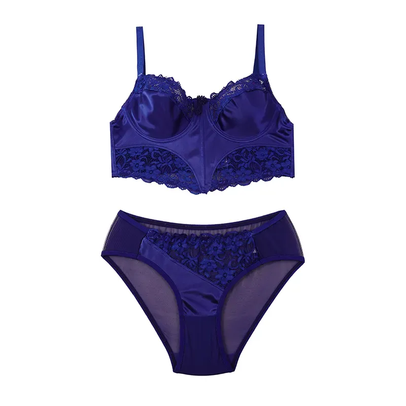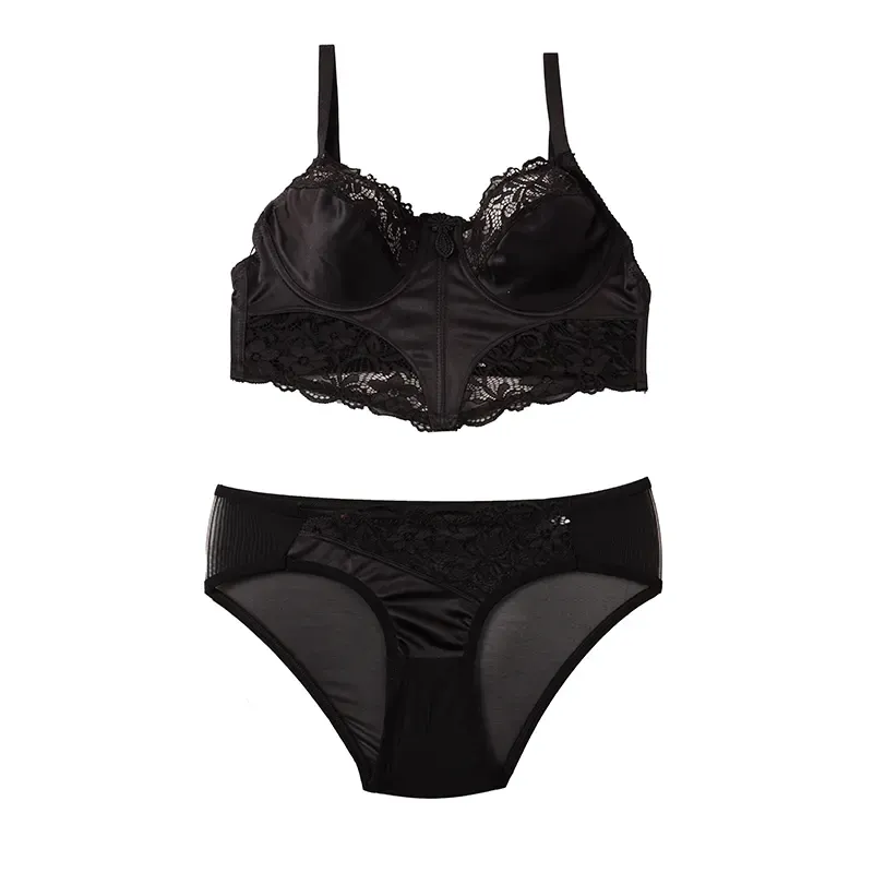 ست لباس زیر زنانه فنردار و کاپ B طرح دار دانتل و ساتن