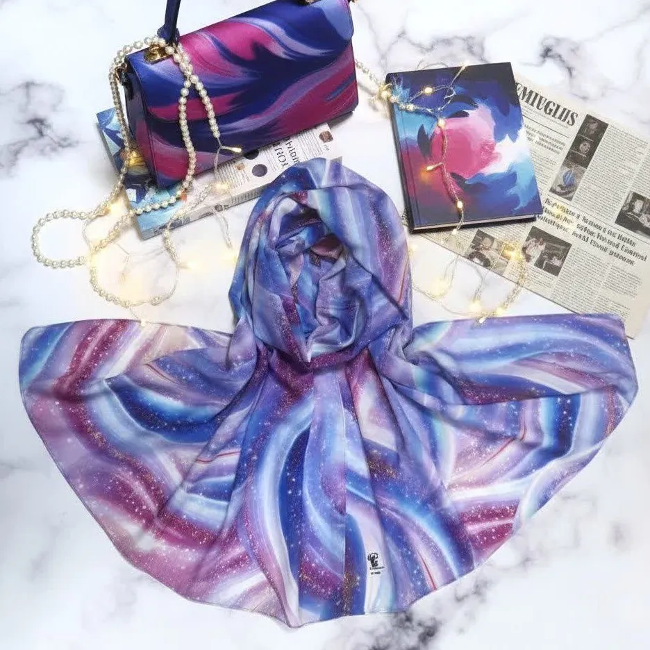 با شال زنانه طرح کهکشان، خاص و متفاوت بدرخشید. این شال با الهام از زیبایی کهکشانها، جلوهای منحصر به فرد به استایل شما میبخشد.