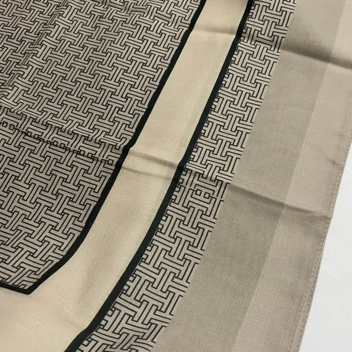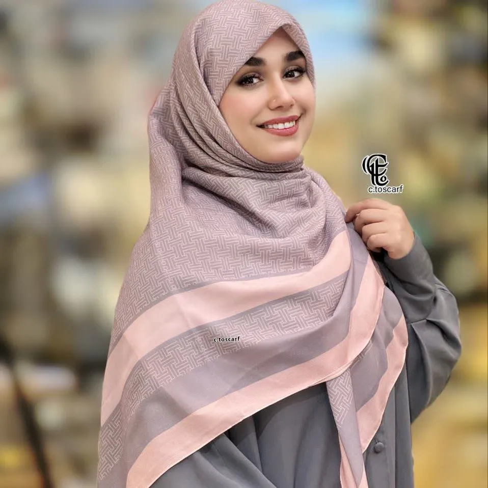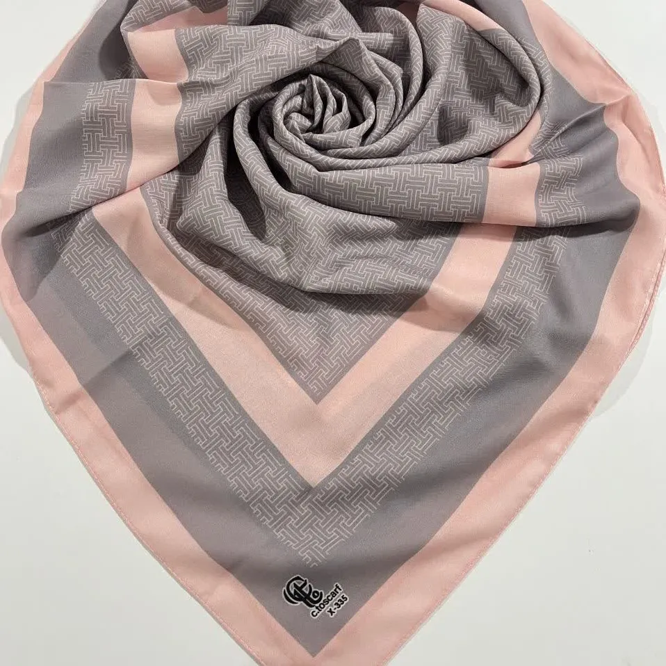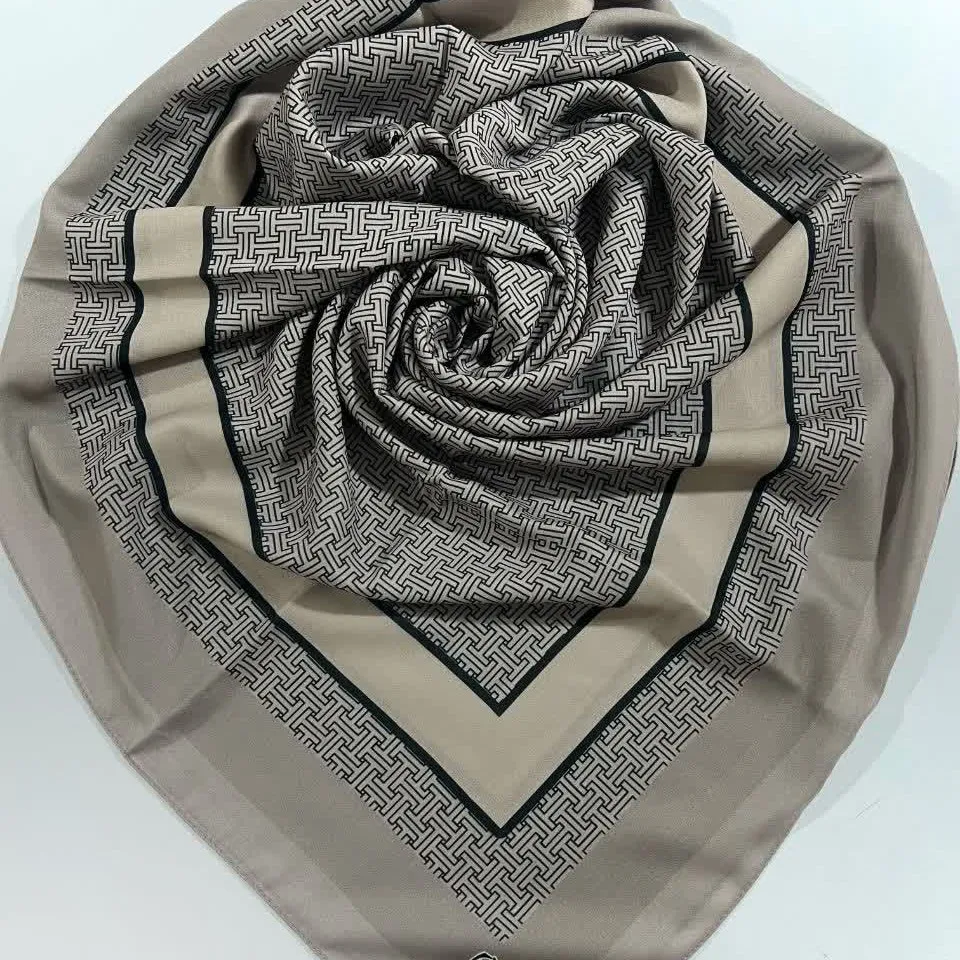 روسری نخی طرح ارکیده سایز 140 | رنگبندی طوسی گلبهی و بژ