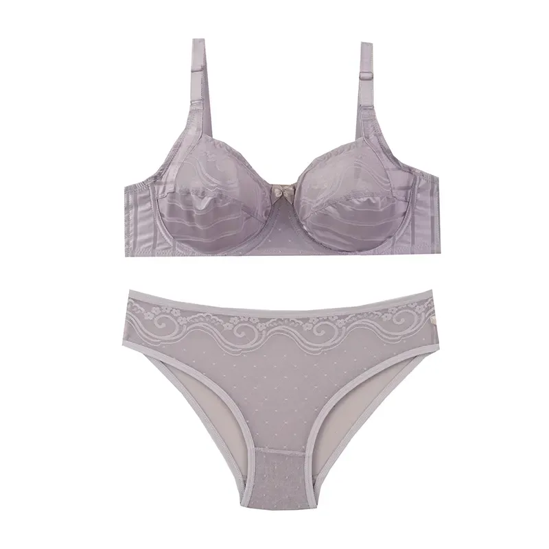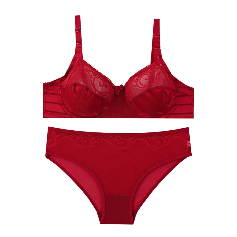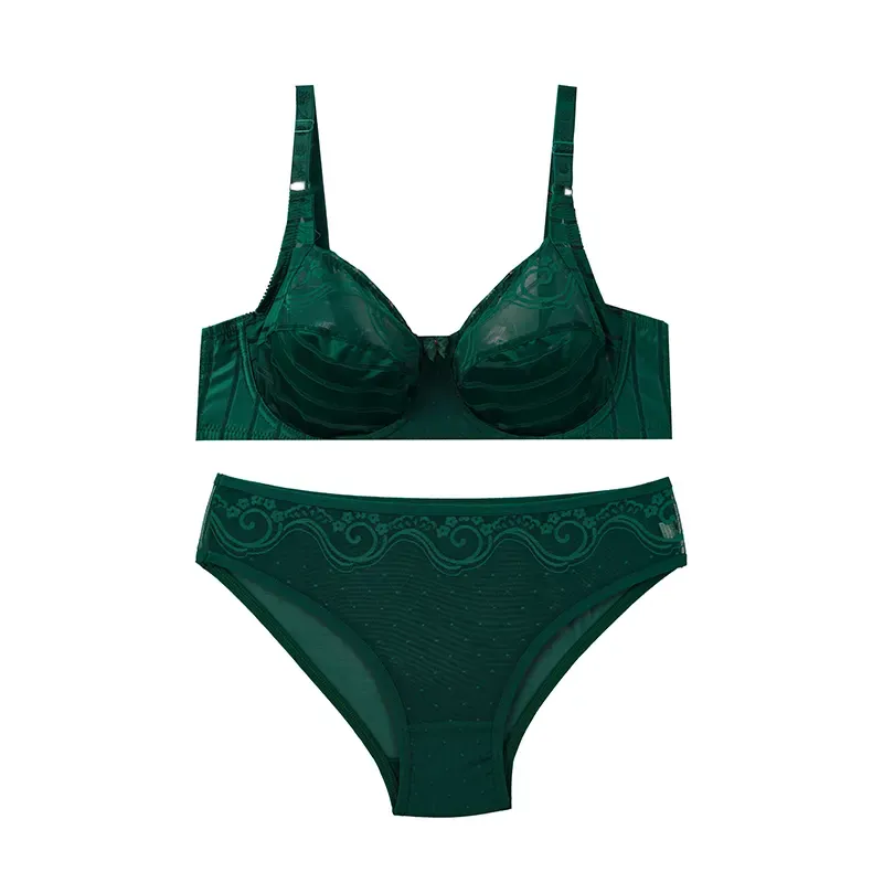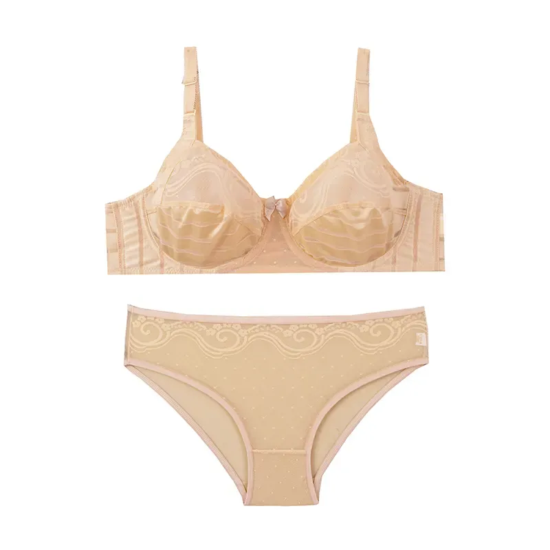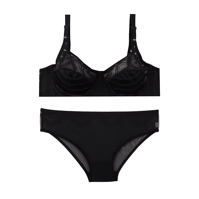 ست لباس زیر زنانه پرلون فنردار اسلیپ بدون کاپ طرح دار