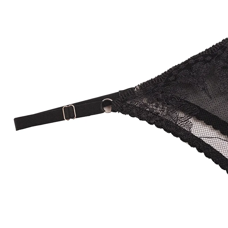 ست لباس زیر زنانه تور گیپور فنردار طرح دار مشکی