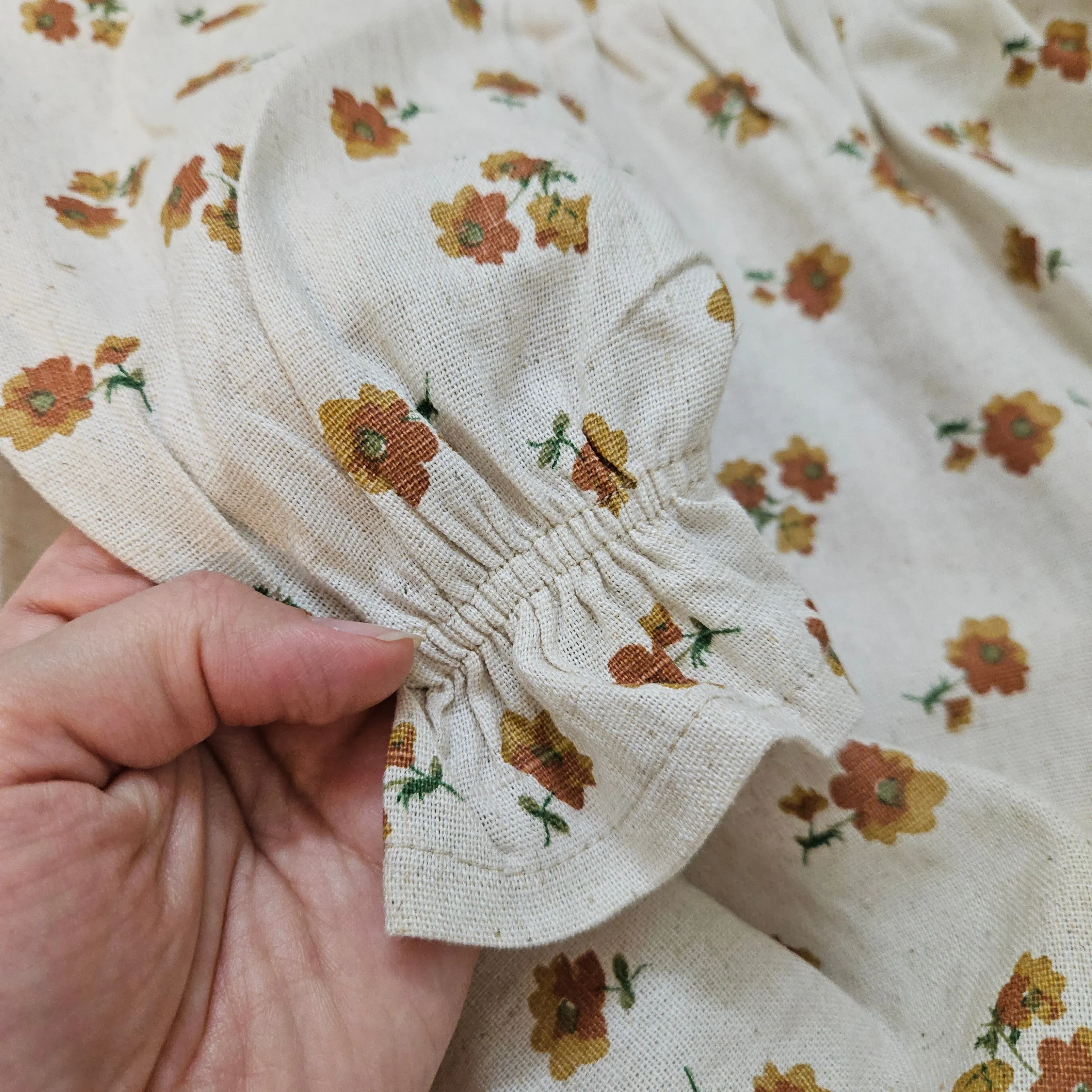 پیراهن دخترانه لینن پاییزه گلدار یقه کبریتی آستین پرنسسی (مناسب 2 تا 9 سال)