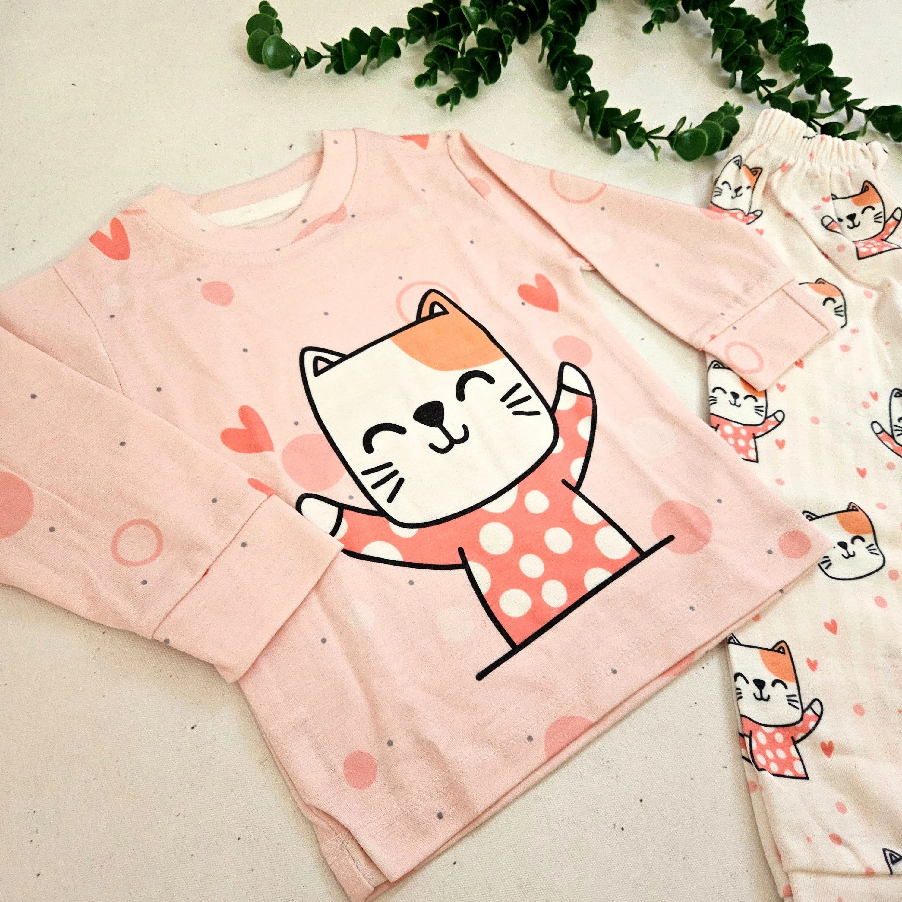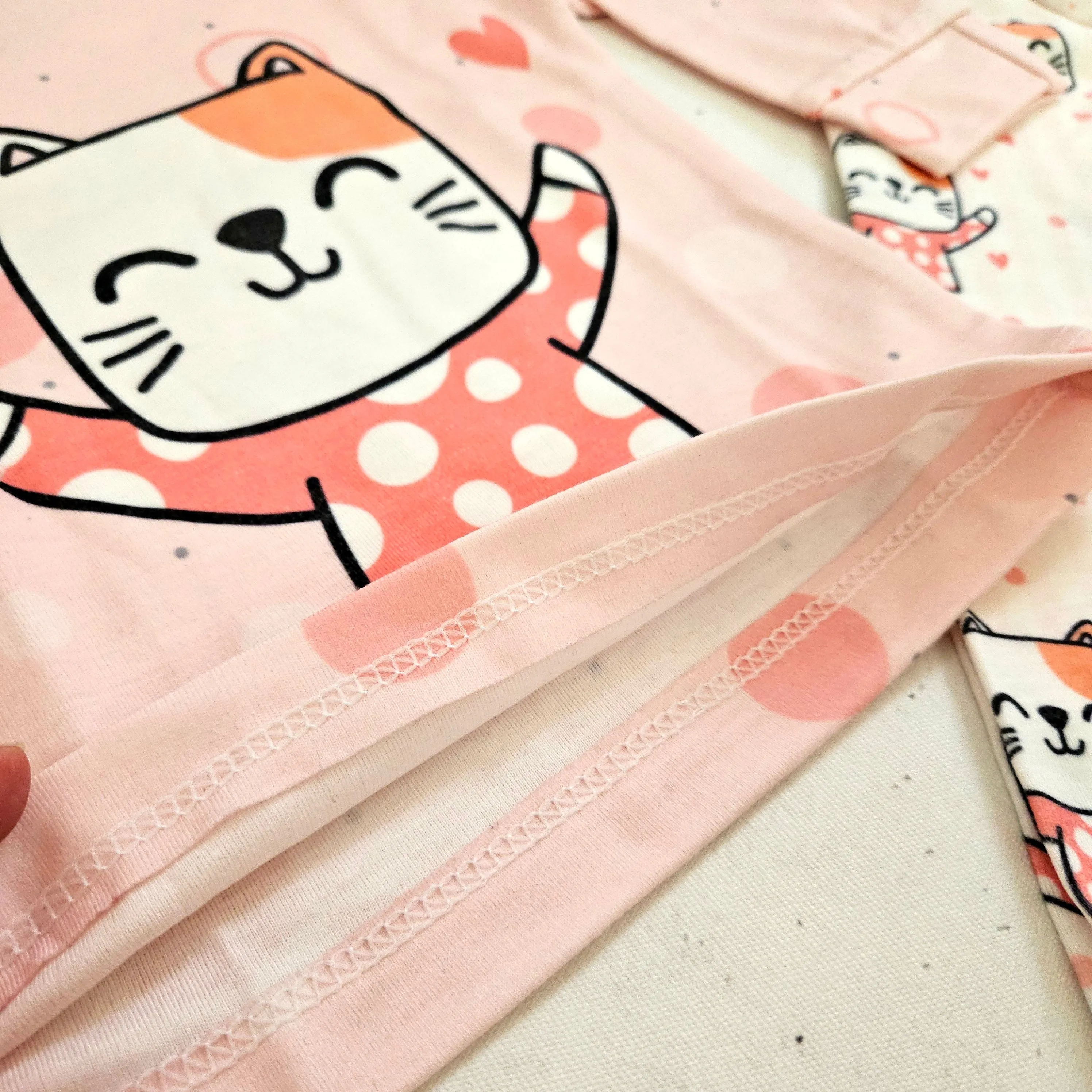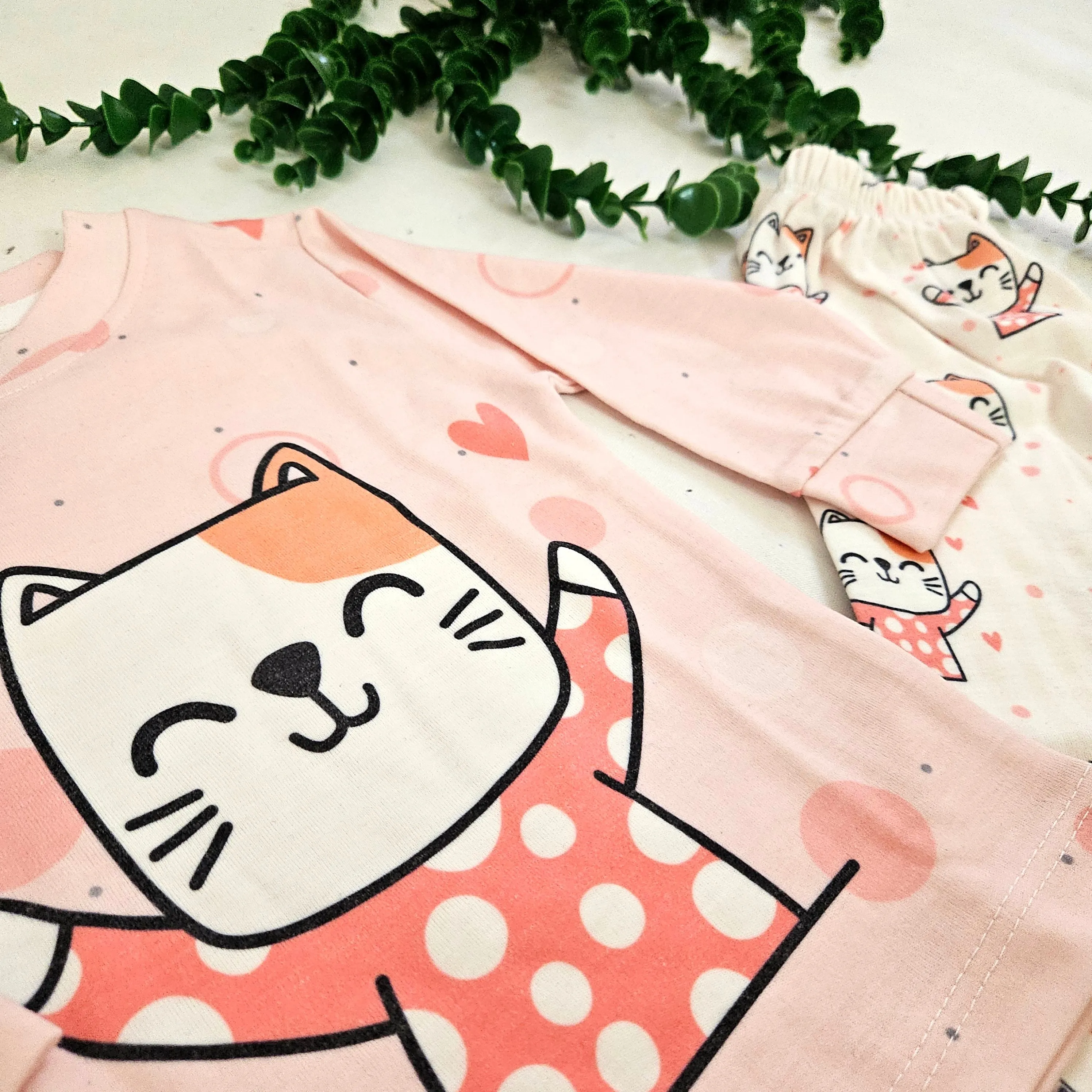 لباس راحتی طرح گربه دخترانه | ست بلوز و شلوار بچگانه پنبه ای نرم و با کیفیت