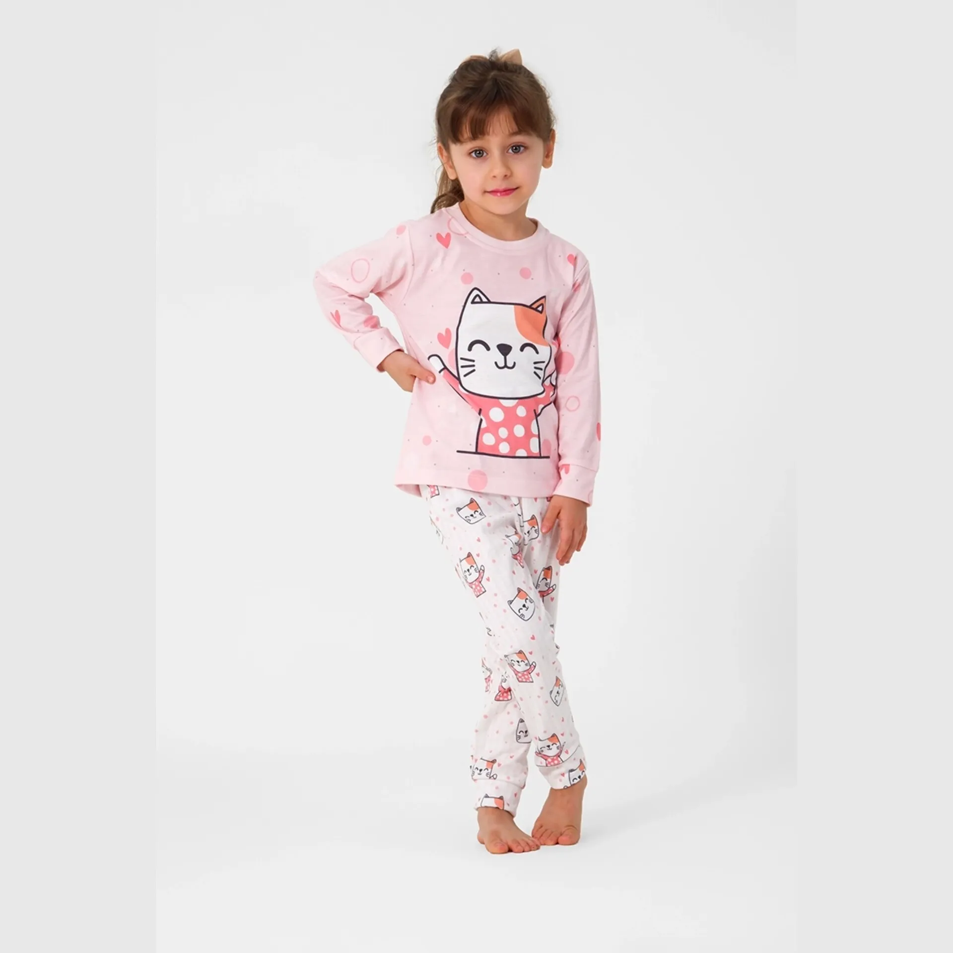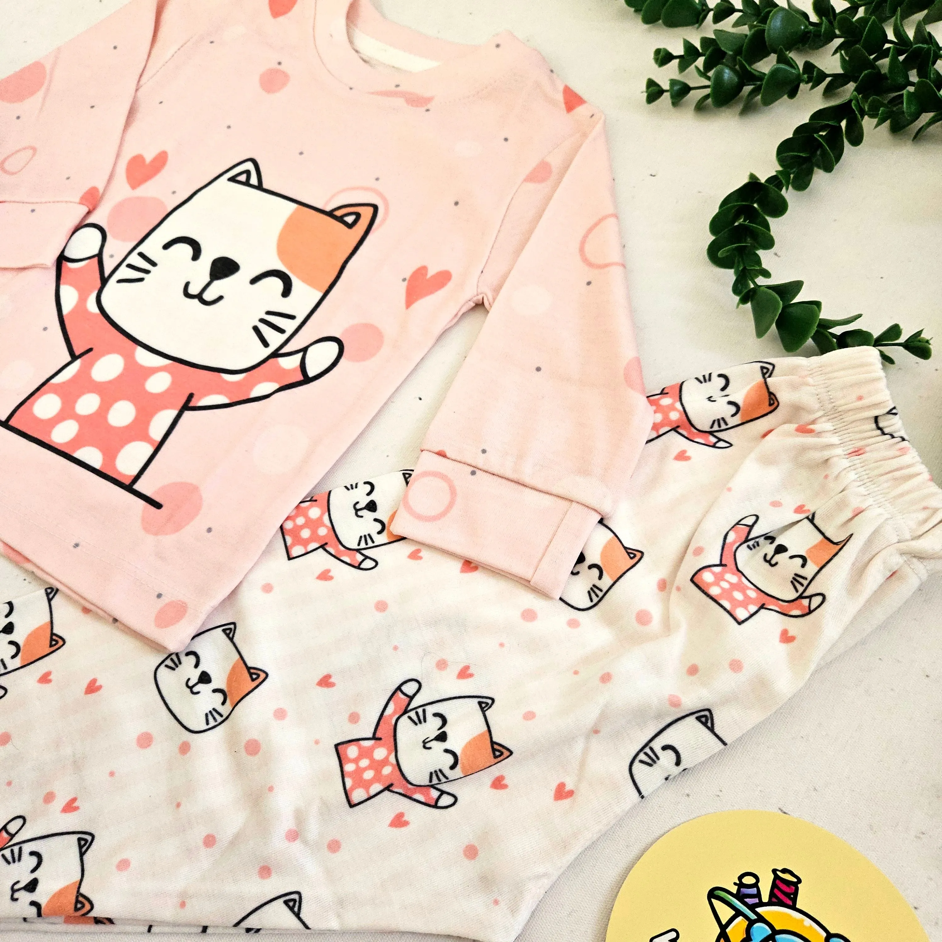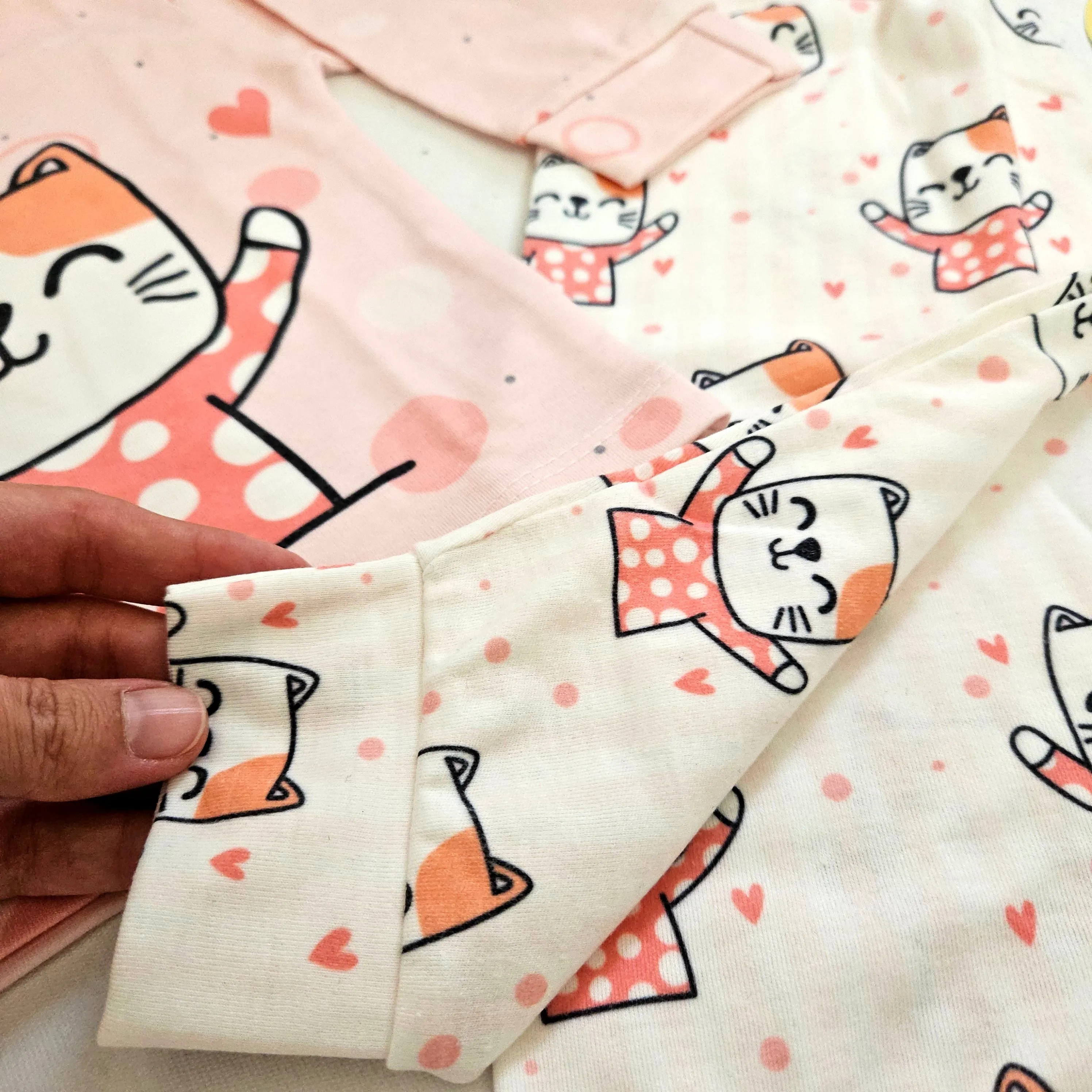 لباس راحتی طرح گربه دخترانه | ست بلوز و شلوار بچگانه پنبه ای نرم و با کیفیت