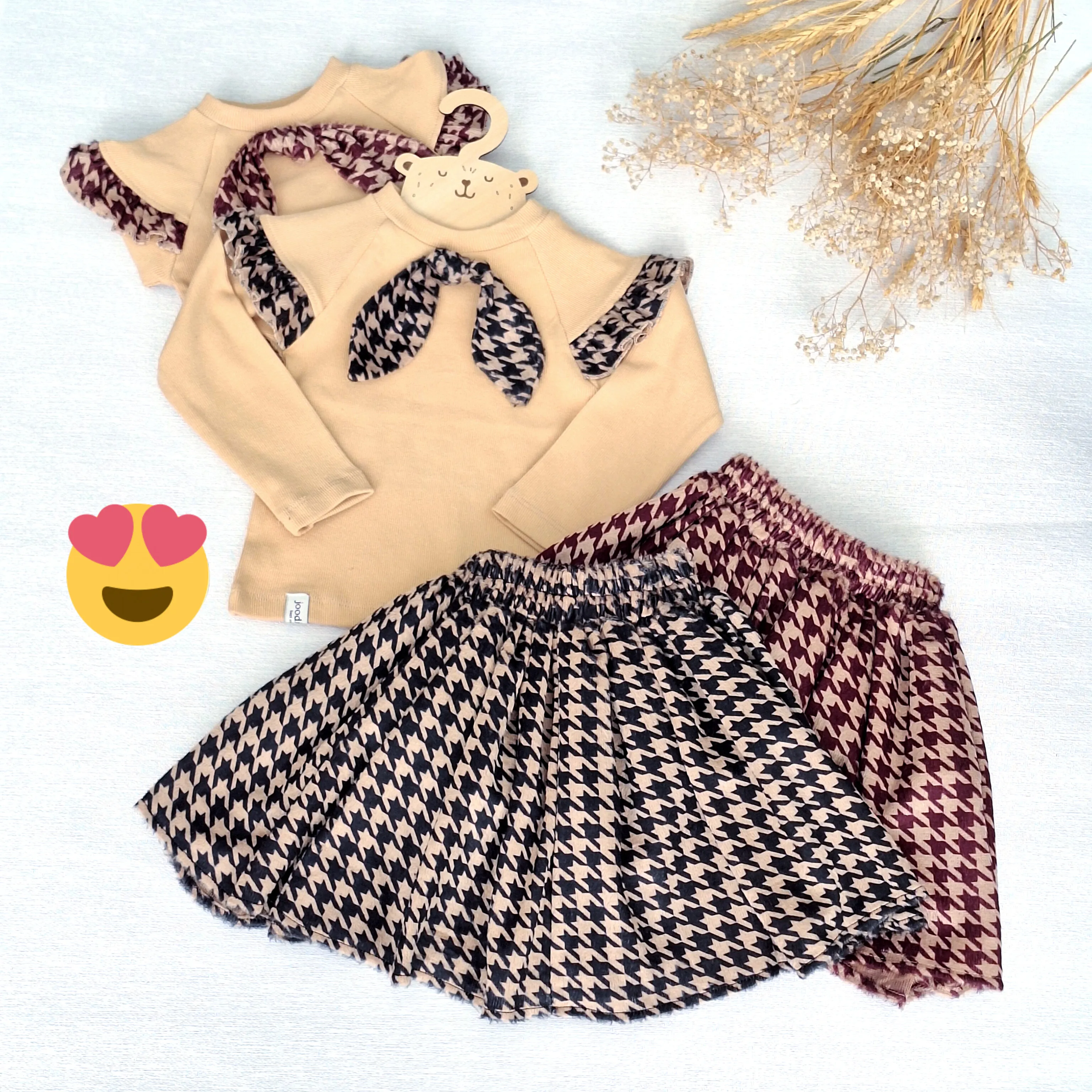 ست بلوز و دامن دخترانه طرح hounds tooth مخمل و فانریپ مناسب 2 تا 13 سال
