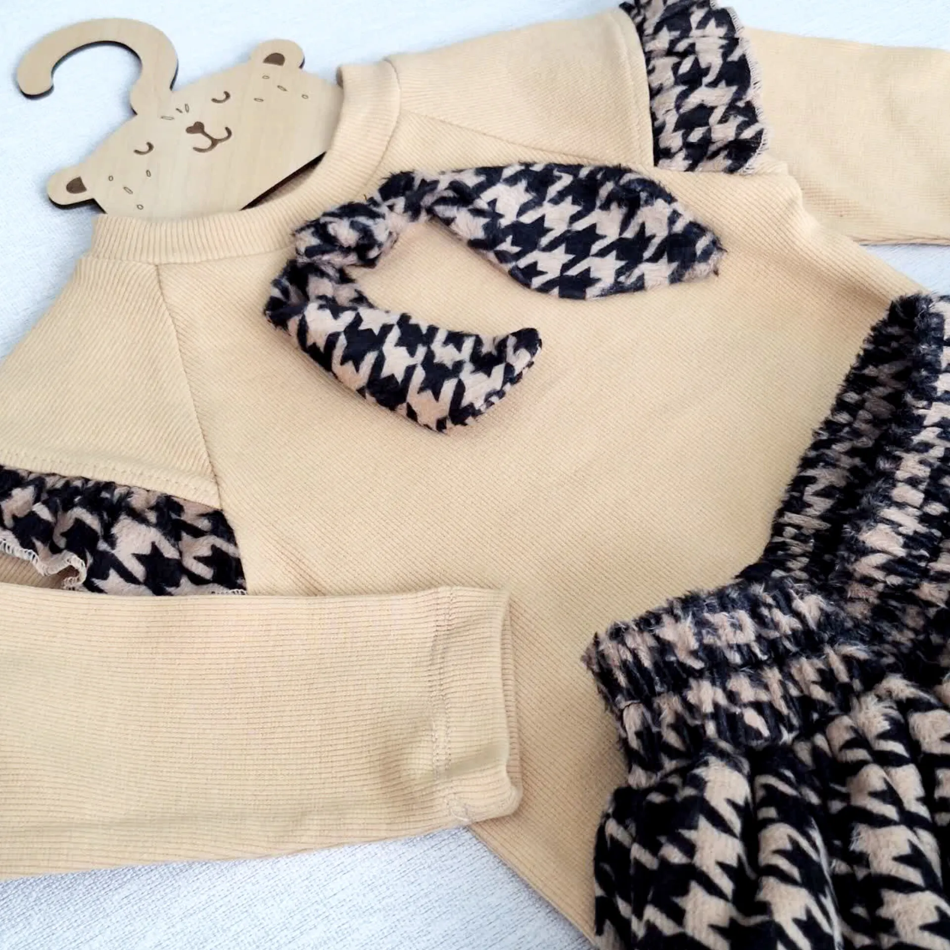 ست بلوز و دامن دخترانه طرح hounds tooth مخمل و فانریپ
