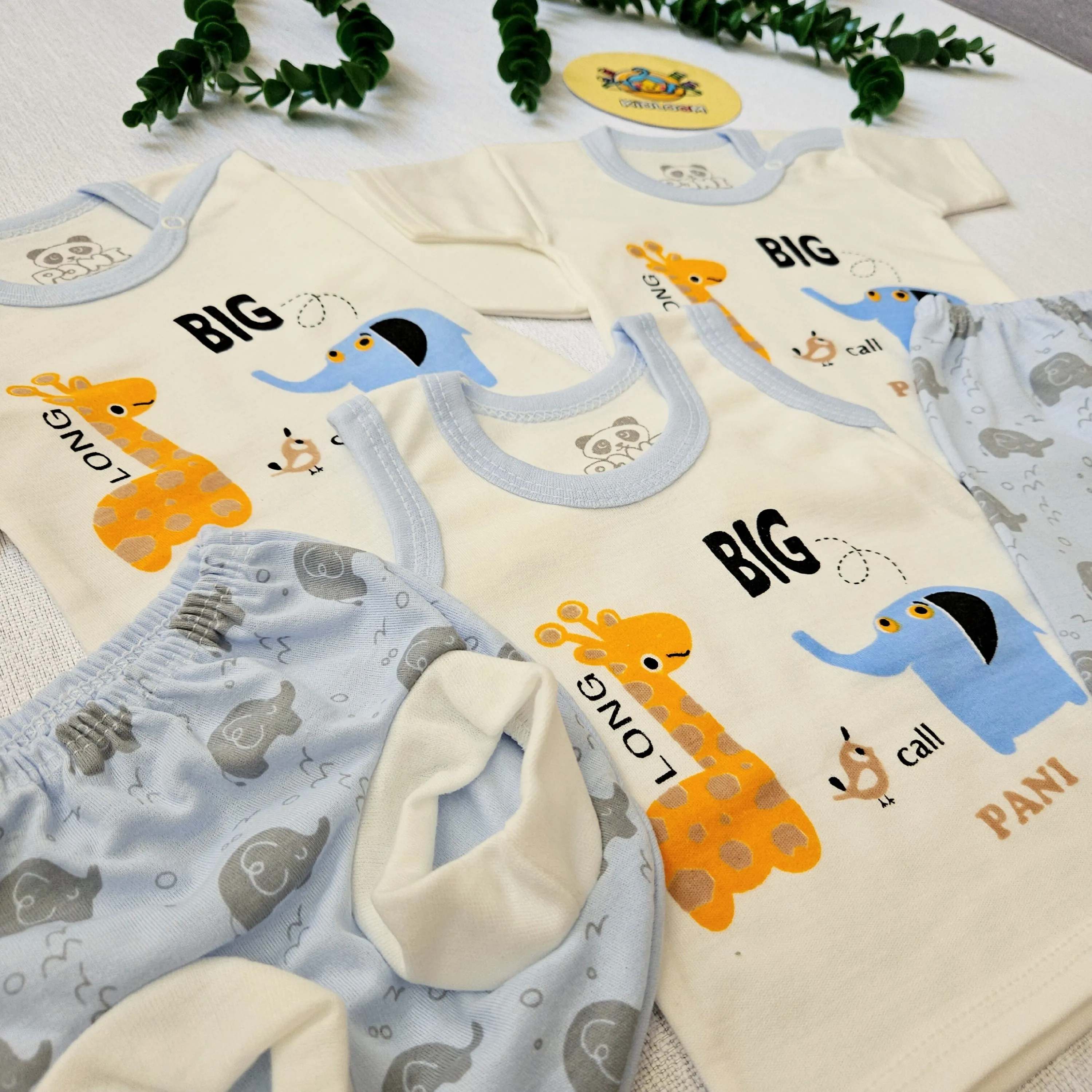 لباس نوزاد پسرانه و دخترانه طرح فیل و زرافه - ست 4 تکه پنبه ای
