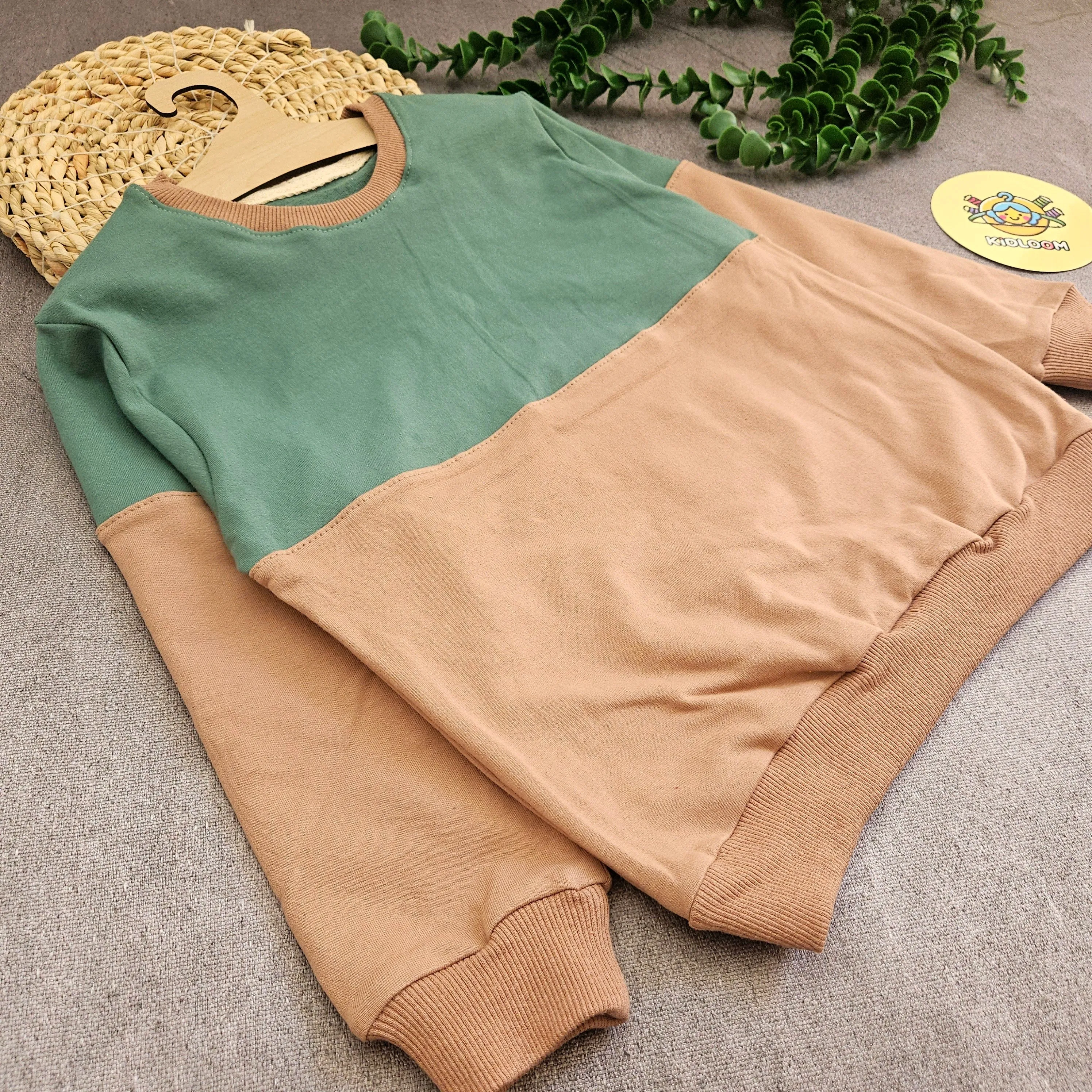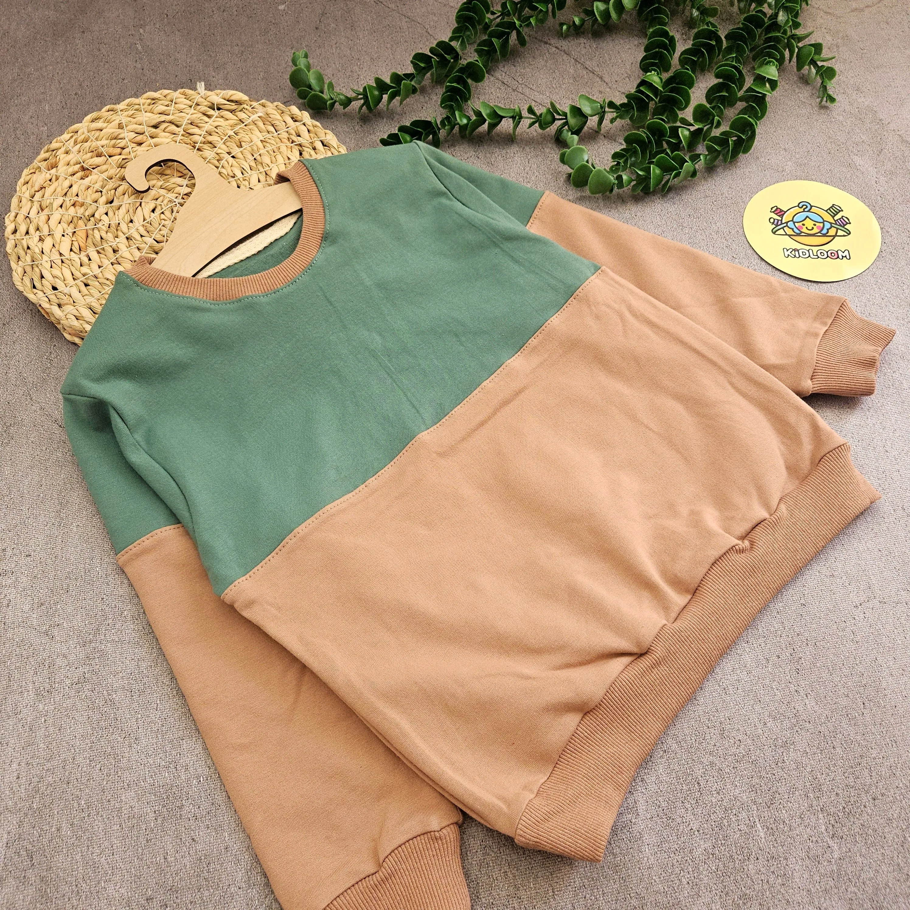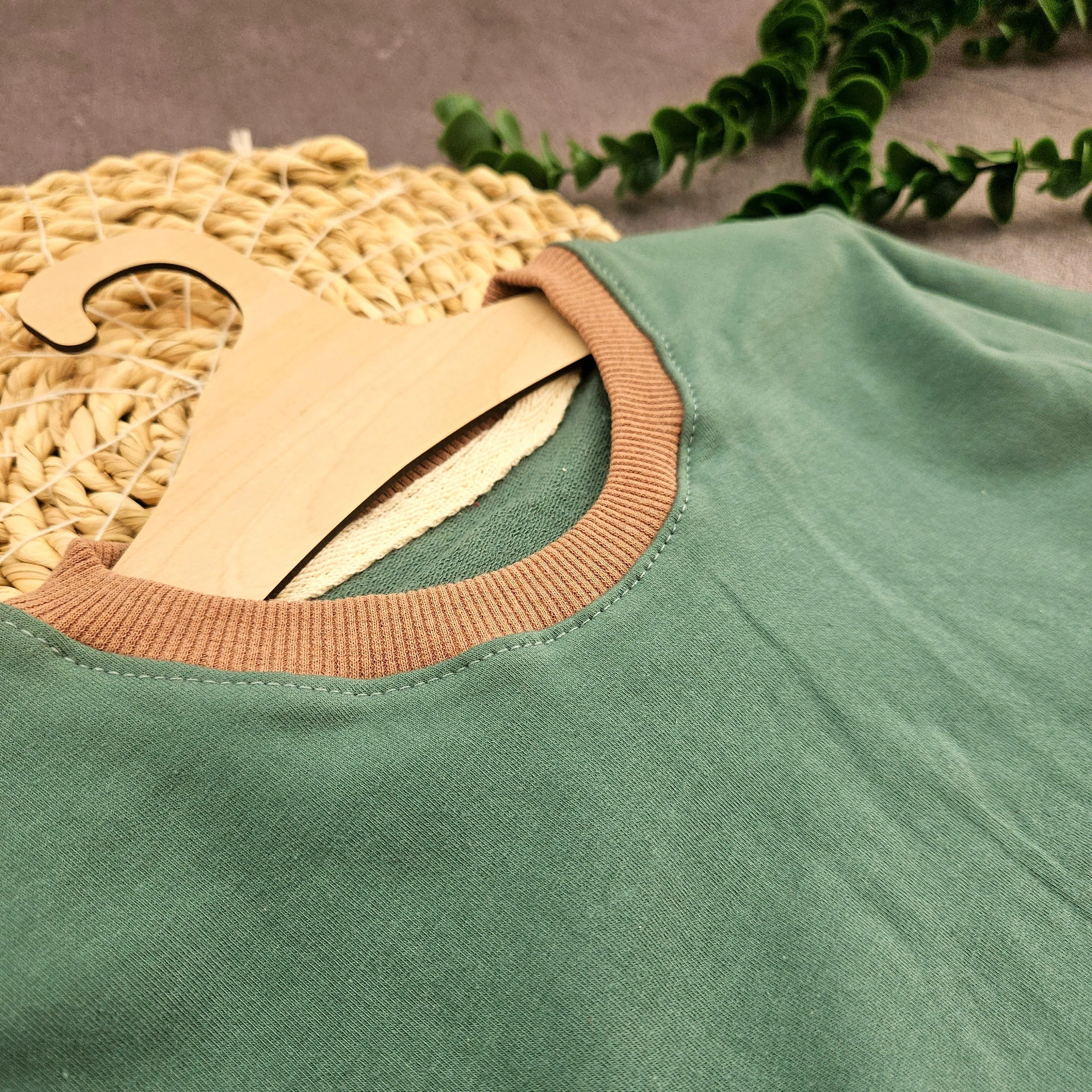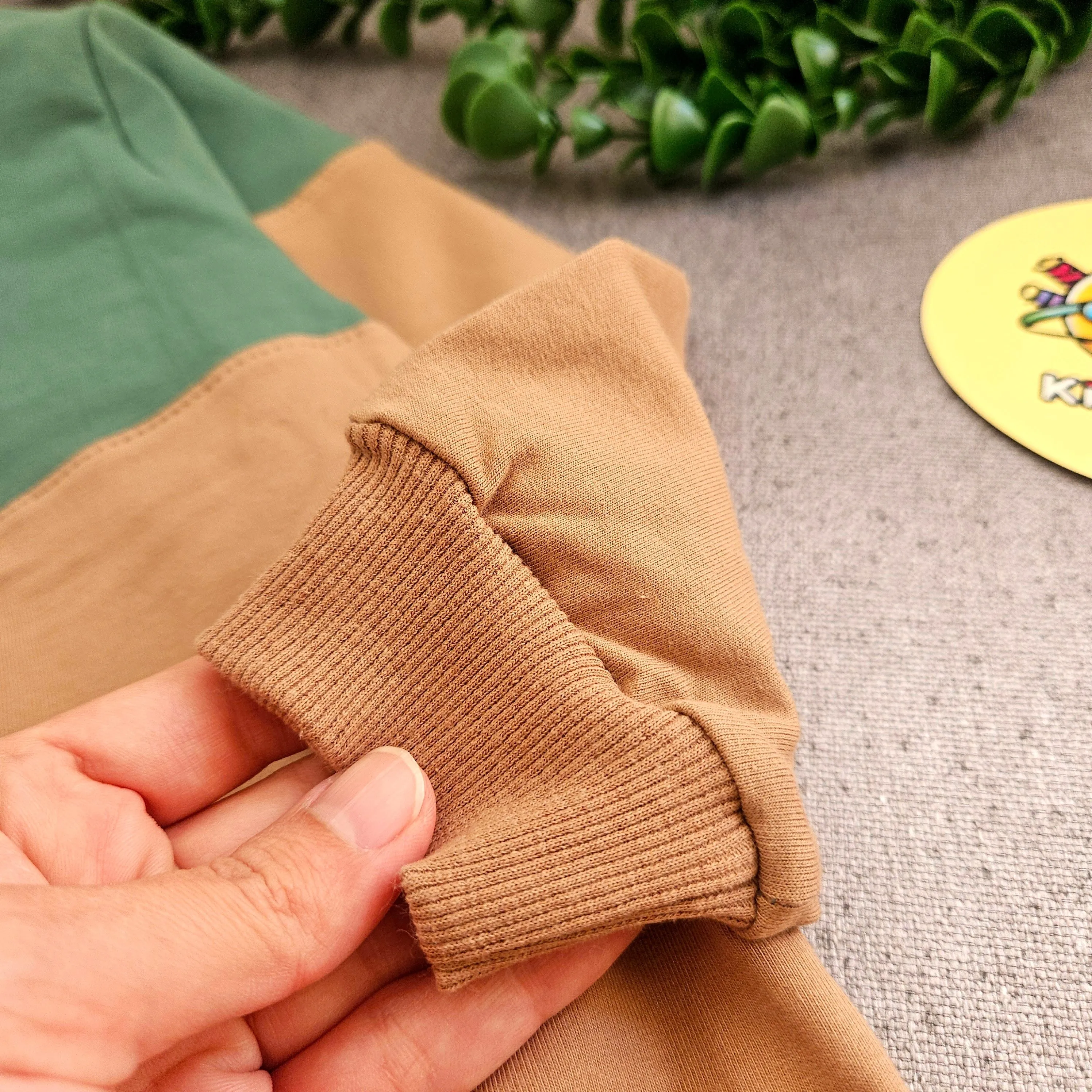 بلوز دورس پنبه لاکرا بچگانه طرح دو رنگ سبز و قهوهای مناسب 1 تا 10 سال
