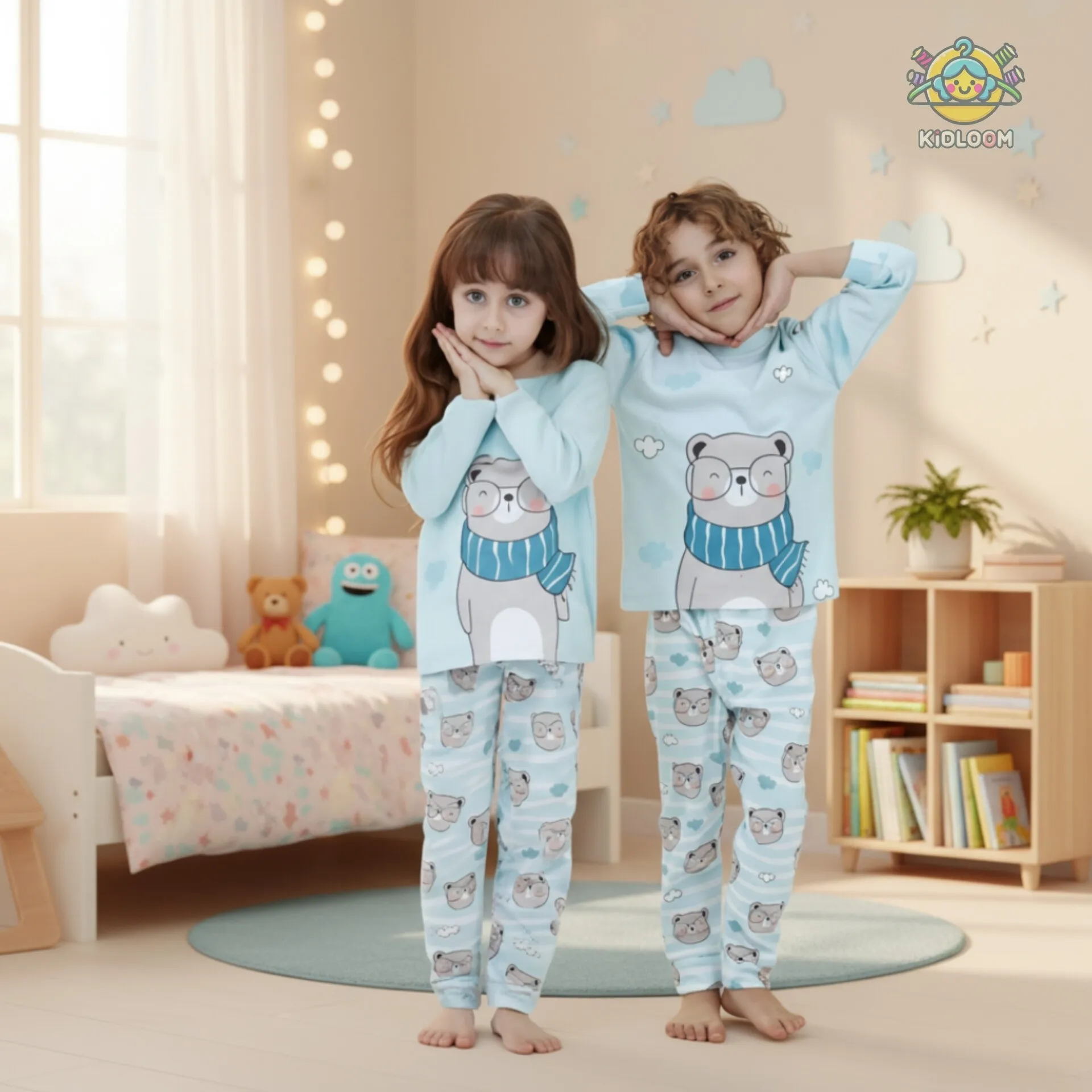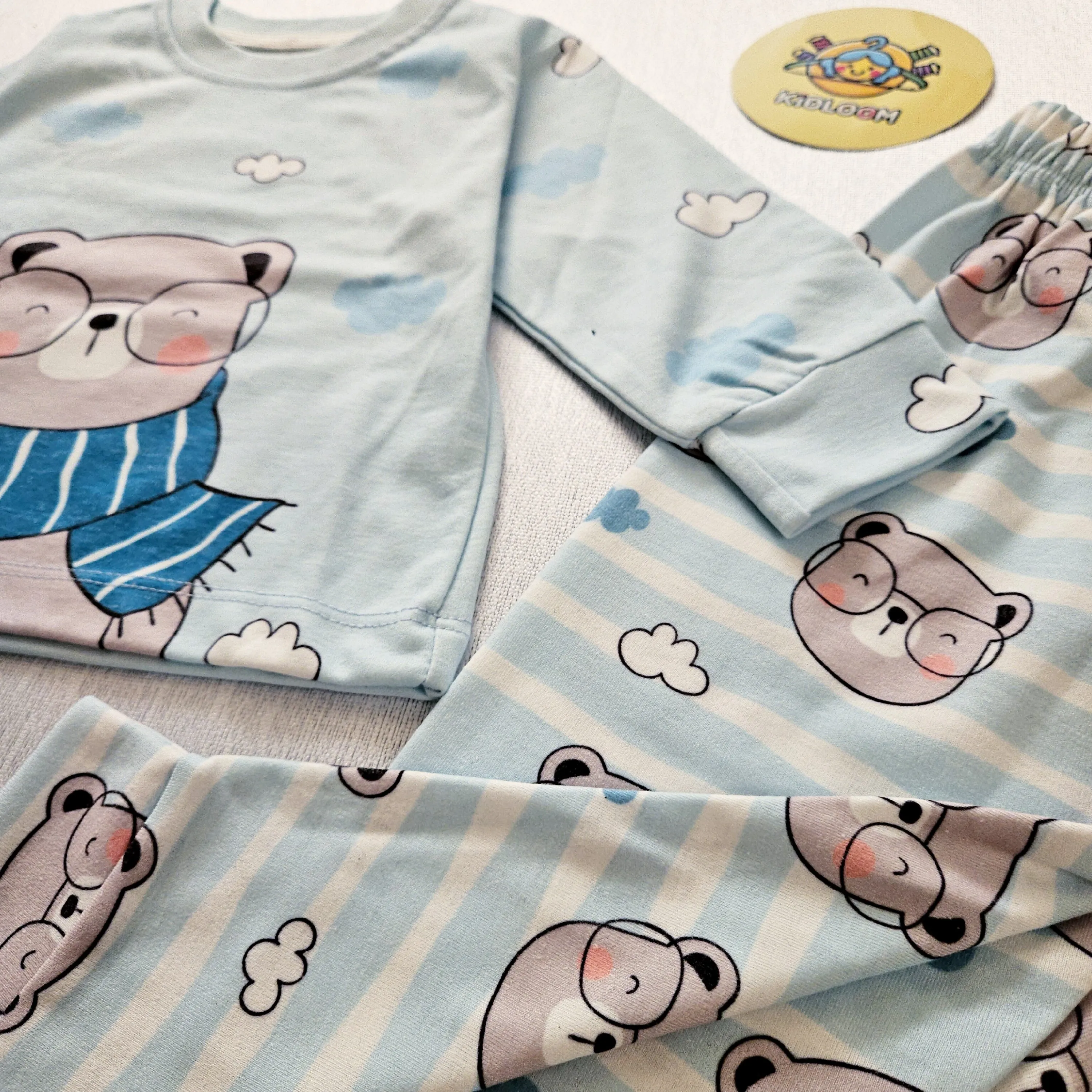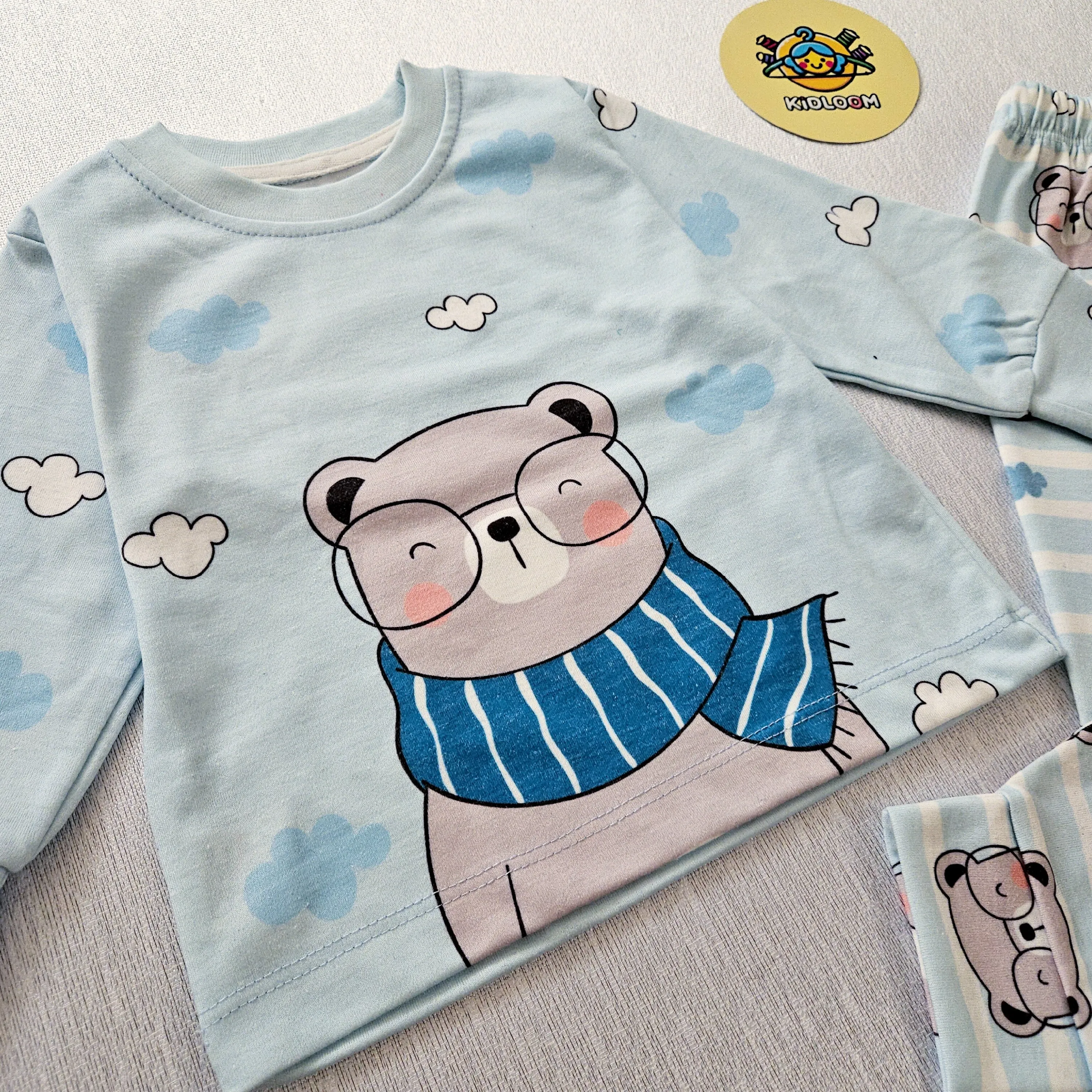 ست بلوز و شلوار راحتی بچگانه طرح خرس عینکی | لباس راحتی کودک پنبه ای