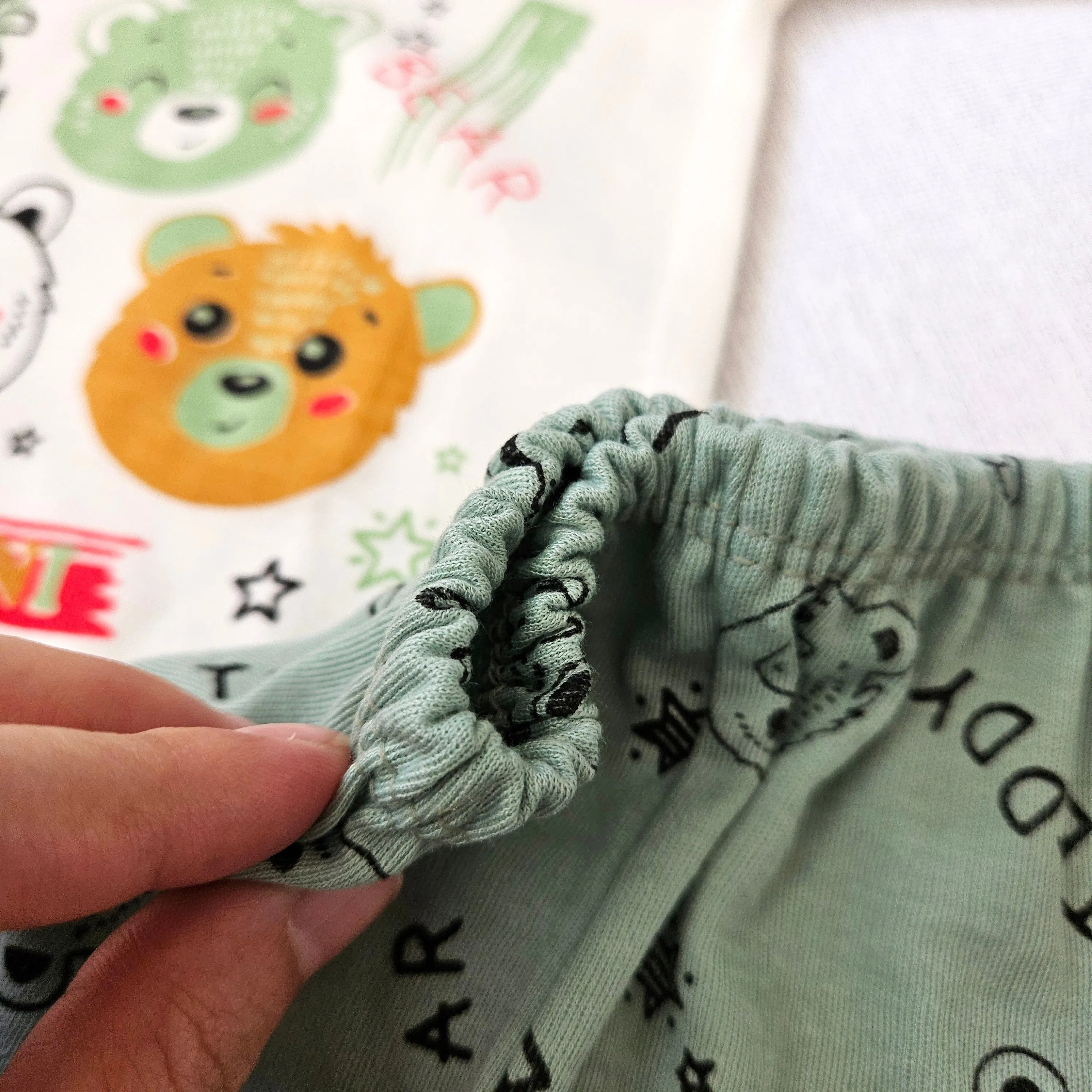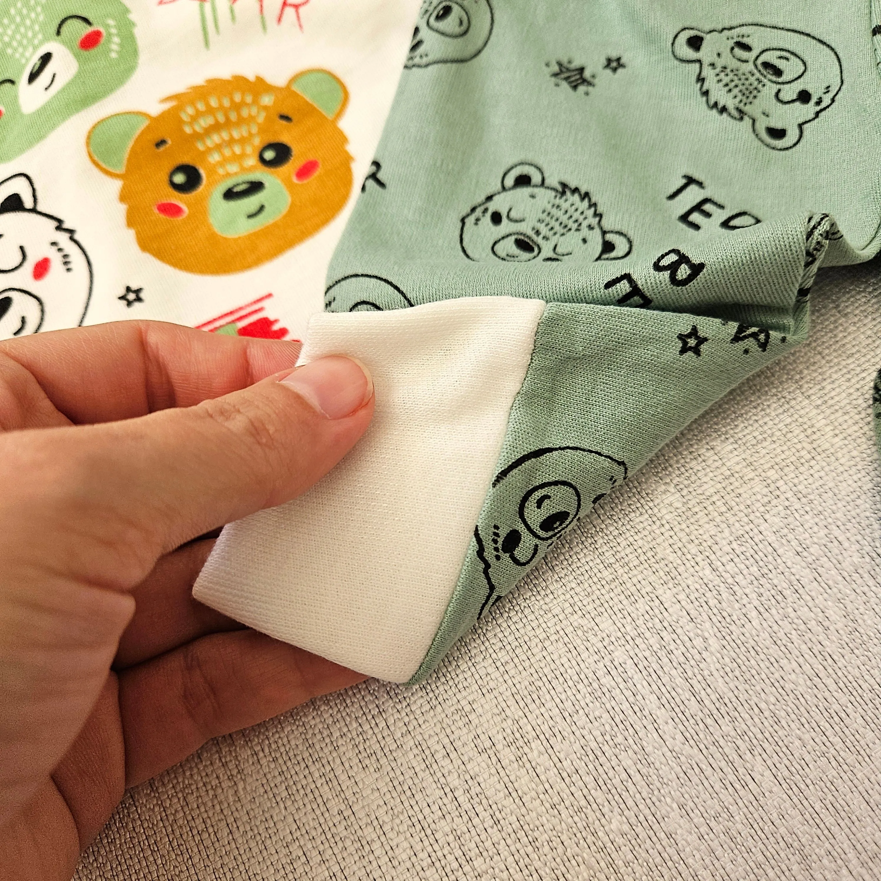 - جنس نخ پنبه لطیف: بافت نرم و بدون ایجاد حساسیت برای پوست لطیف نوزاد.
