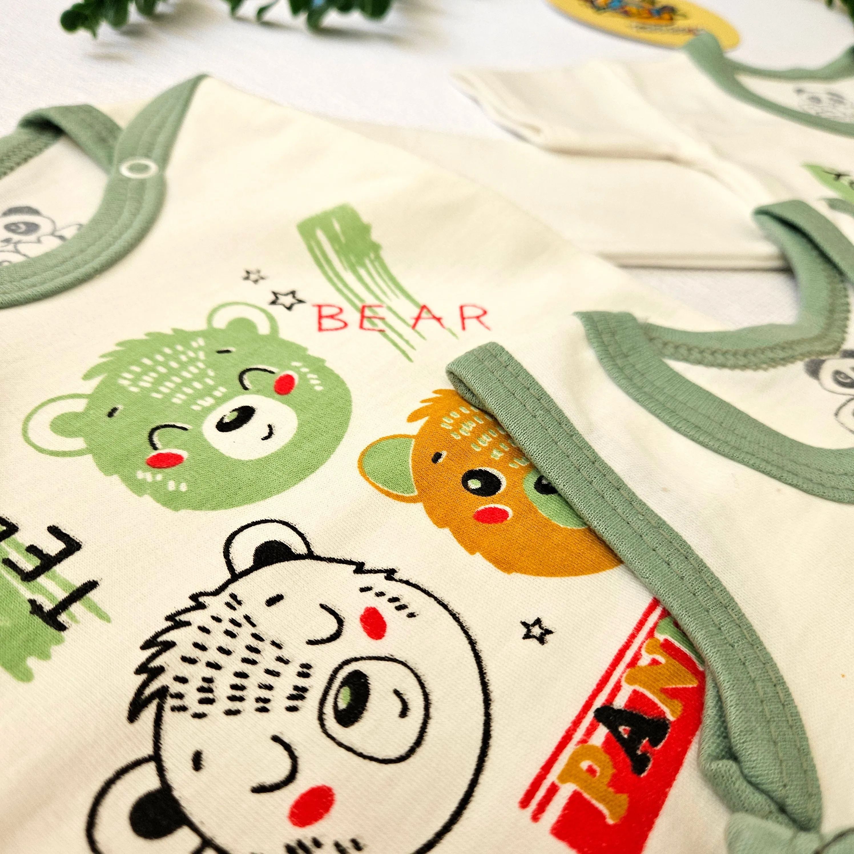 لباس نوزادی طرح خرس نخ پنبه لطیف دکمه دار مناسب 0 تا 9 ماه