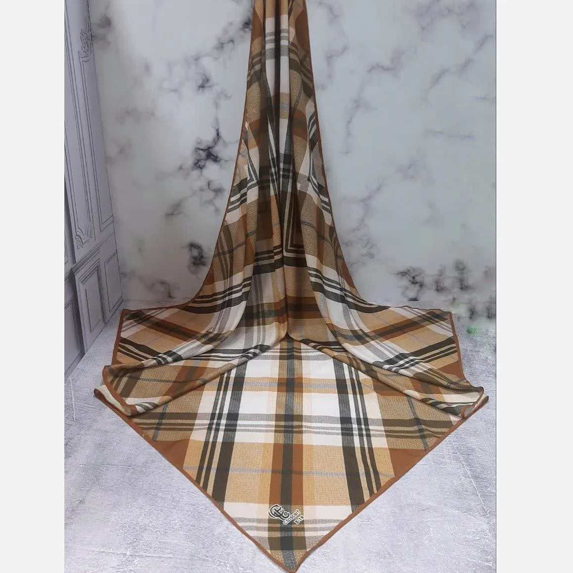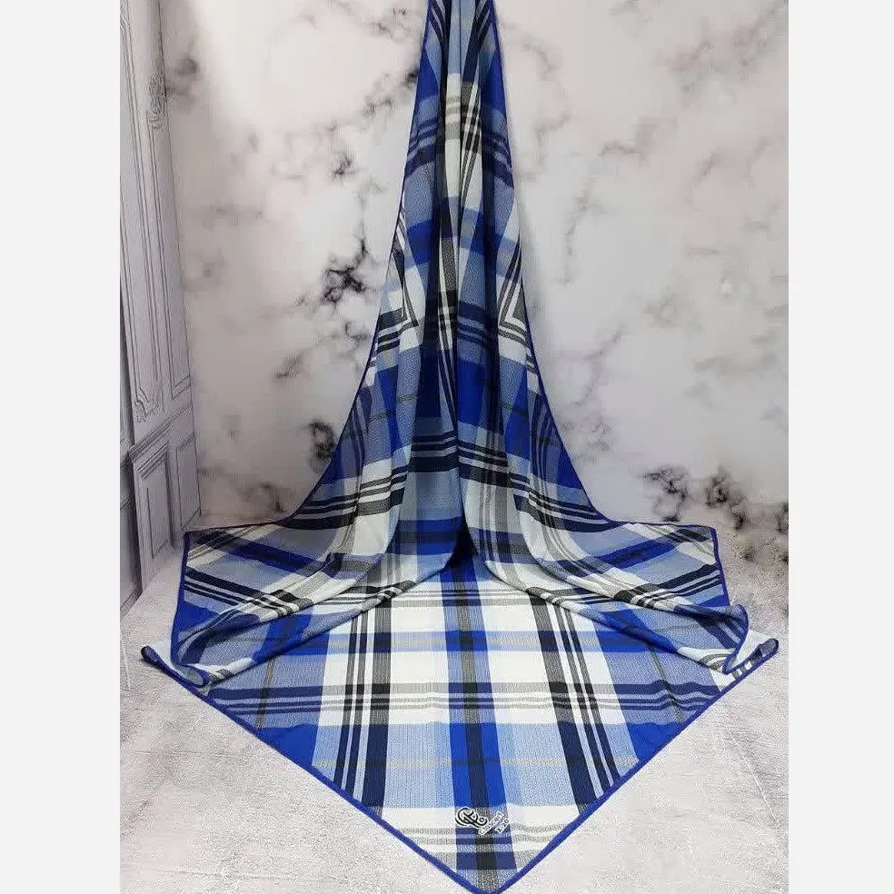روسری طرح چهارخونه نخی مونالیزا قواره بزرگ 140 سانتیمتر شیک و مجلسی