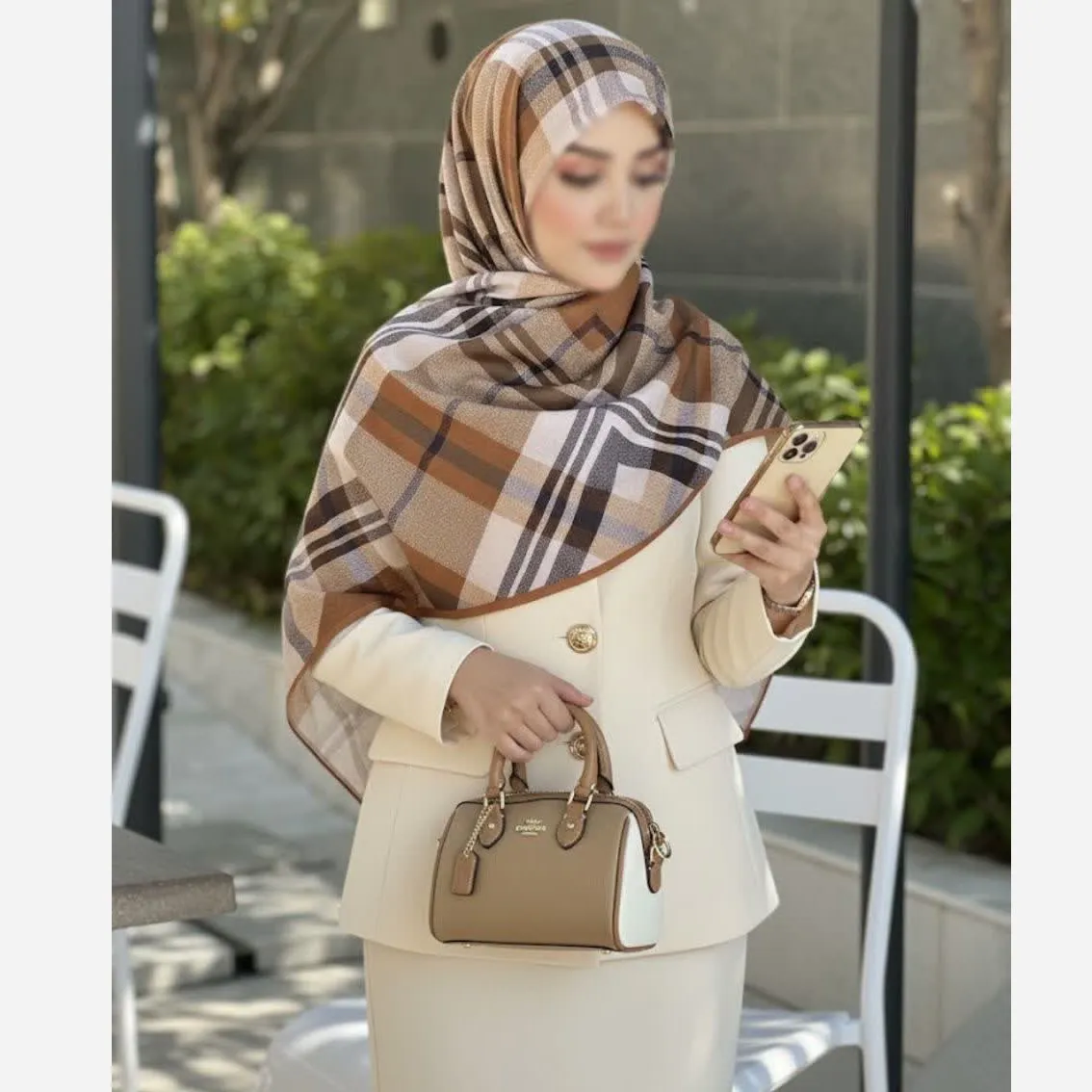 برای تکمیل استایل شیک و مجلسی خود، خرید این روسری طرح چهارخونه را به شما پیشنهاد میکنیم.