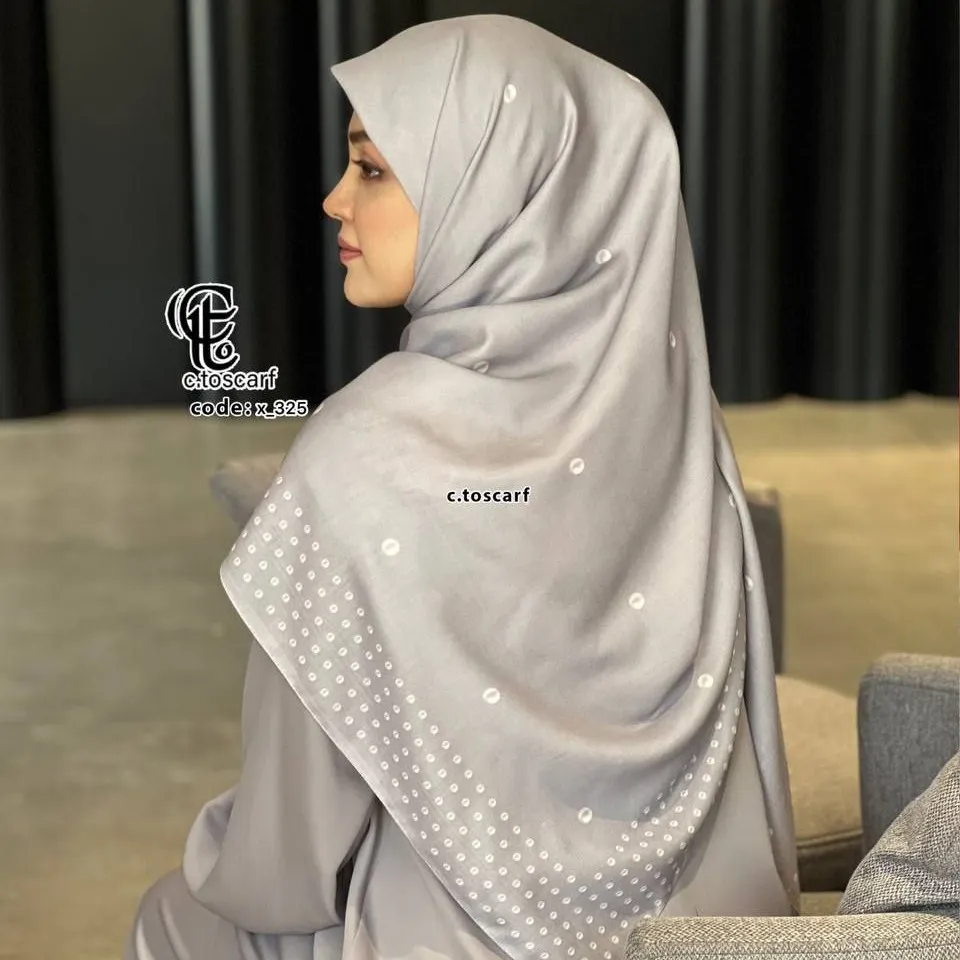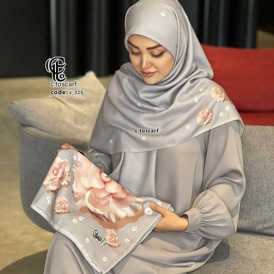 روسری طرح صدف سه بعدی قواره بزرگ 140 نخ کاستوم سیتو دور چرخ دوز
