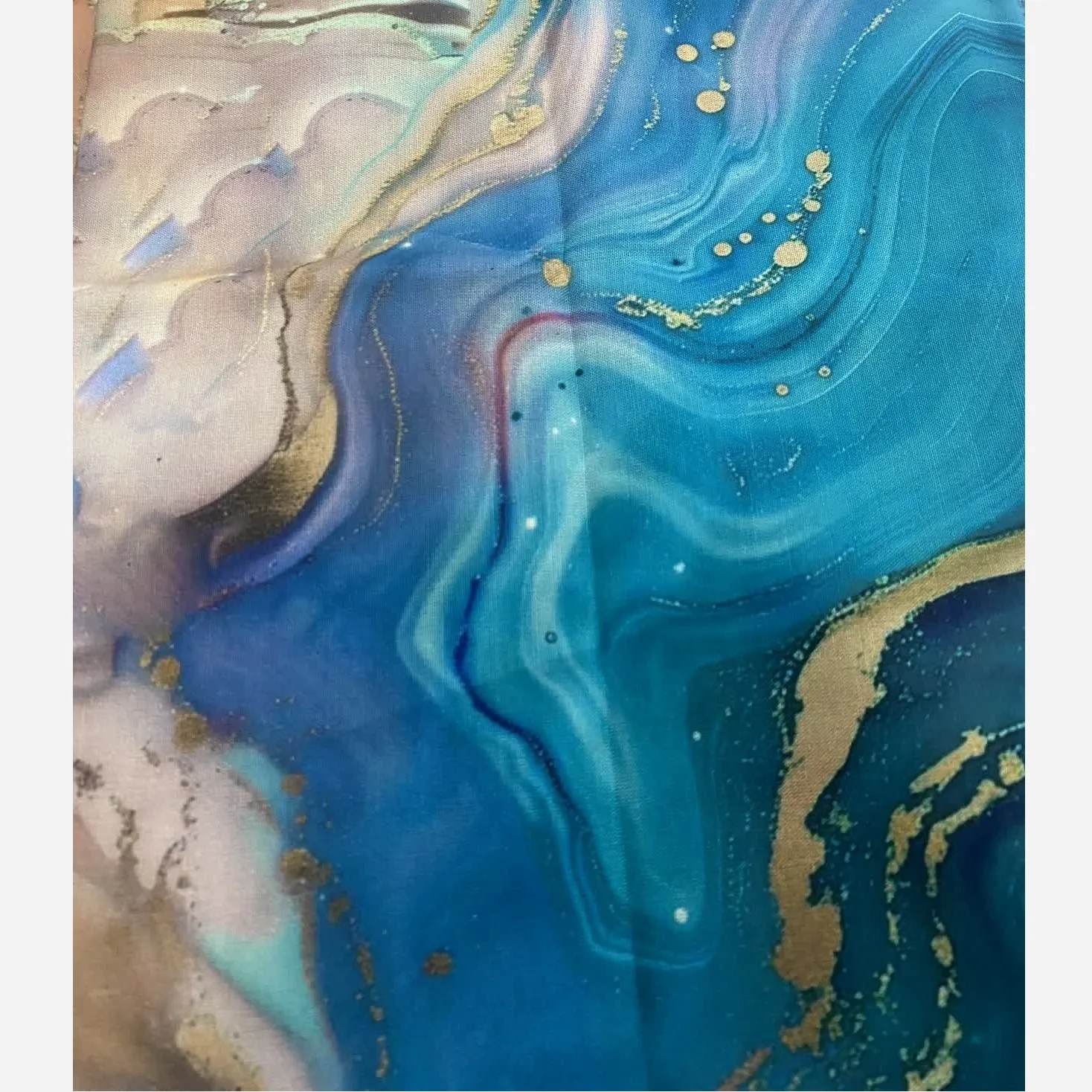 روسری طرح اقیانوس، قواره متوسط، دور دوخت، ساتن ابریشم، شال زنانه مجلسی