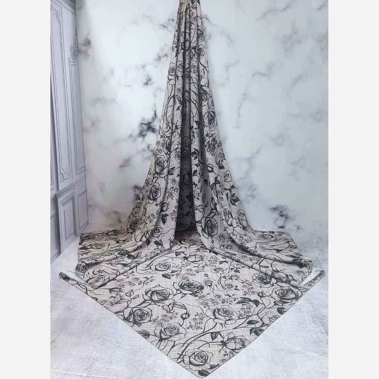 شال زنانه طرح گل رز مشکی طوسی شیک و خاص
