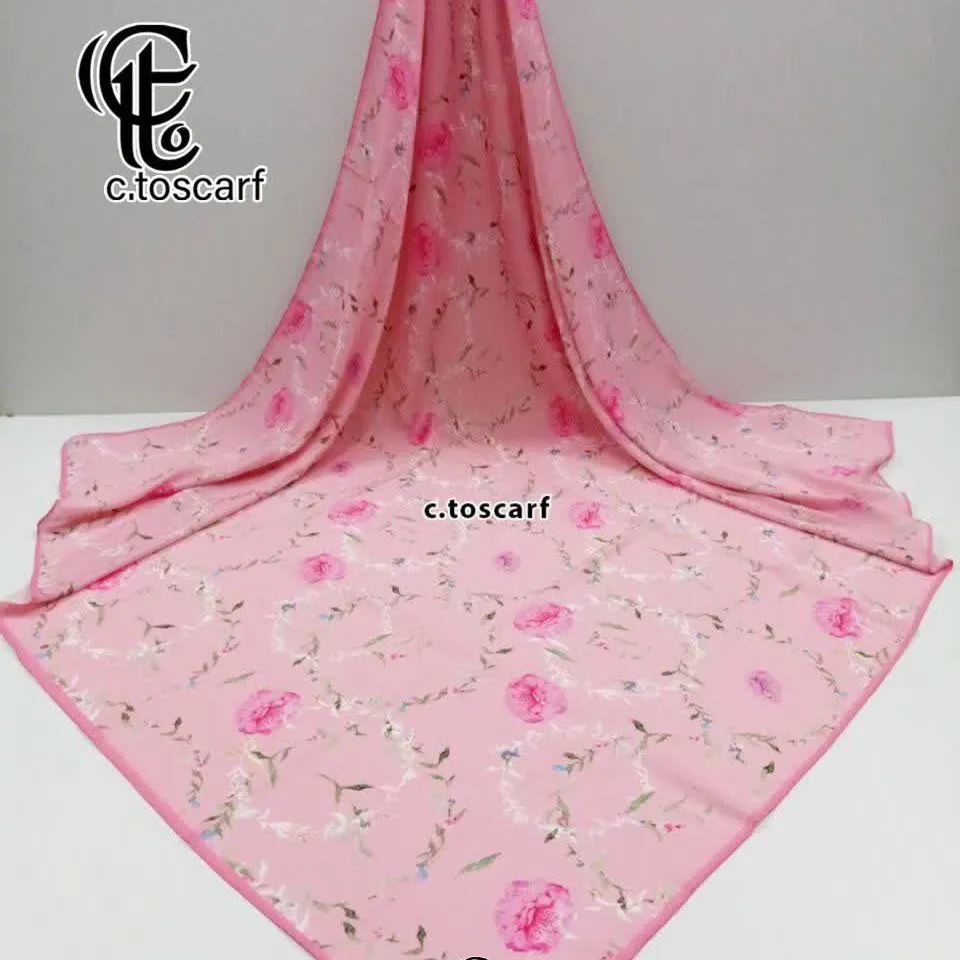 روسری نخی طرح دابل پینک قواره بزرگ 140 سانتیمتر سیتو